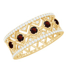 Featuring bold elegance and timeless charm, this Art Deco Wedding Band is designed for lovers who crave a statement of enduring devotion. The 3 mm Round Shape Garnet stones are carefully set in Prong Setting alongside sparkling Diamond stones in a striking geometric pattern, evoking the glamour and sophistication of the Art Deco era while celebrating an entirely modern love. Its thick band creates a sense of strength, symbolizing a bond that stands the test of time. Each gemstone catches the light in a dazzling play of color and brilliance, making every glance at this Wide Wedding Band a reminder of shared moments and cherished memories. Crafted with care, this Garnet Diamond Ring balances artistry and comfort, ensuring it feels as wonderful to wear as it looks. Delivered in a signature jewelry box, it is ready to surprise, delight and make a lasting impression, whether on a wedding day, anniversary or special occasion. Combining vintage inspiration with contemporary romance, this Thick Wedding Band transforms a simple gesture into an unforgettable promise of eternal love.