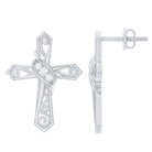 Embrace your belief artistically by wearing these Moissanite Art Deco Earrings crafted with 14K White Gold Plated Silver. The earrings feature 3 Moissanite stones placed diagonally at the center of a metallic cross frame depicting your spiritual values. The vintage pattern is engraved with artistic detailing that beautifies the overall look of these earrings. These Cross Earrings behold the classic shine of D-VS1 Quality Moissanite which makes it perfect to keep your beliefs close to your heart. The Earrings with Screw on Backs stay on place which ensures the safety of the jewel. These earrings will be delivered to you in premium packing with the certificate of authenticity.