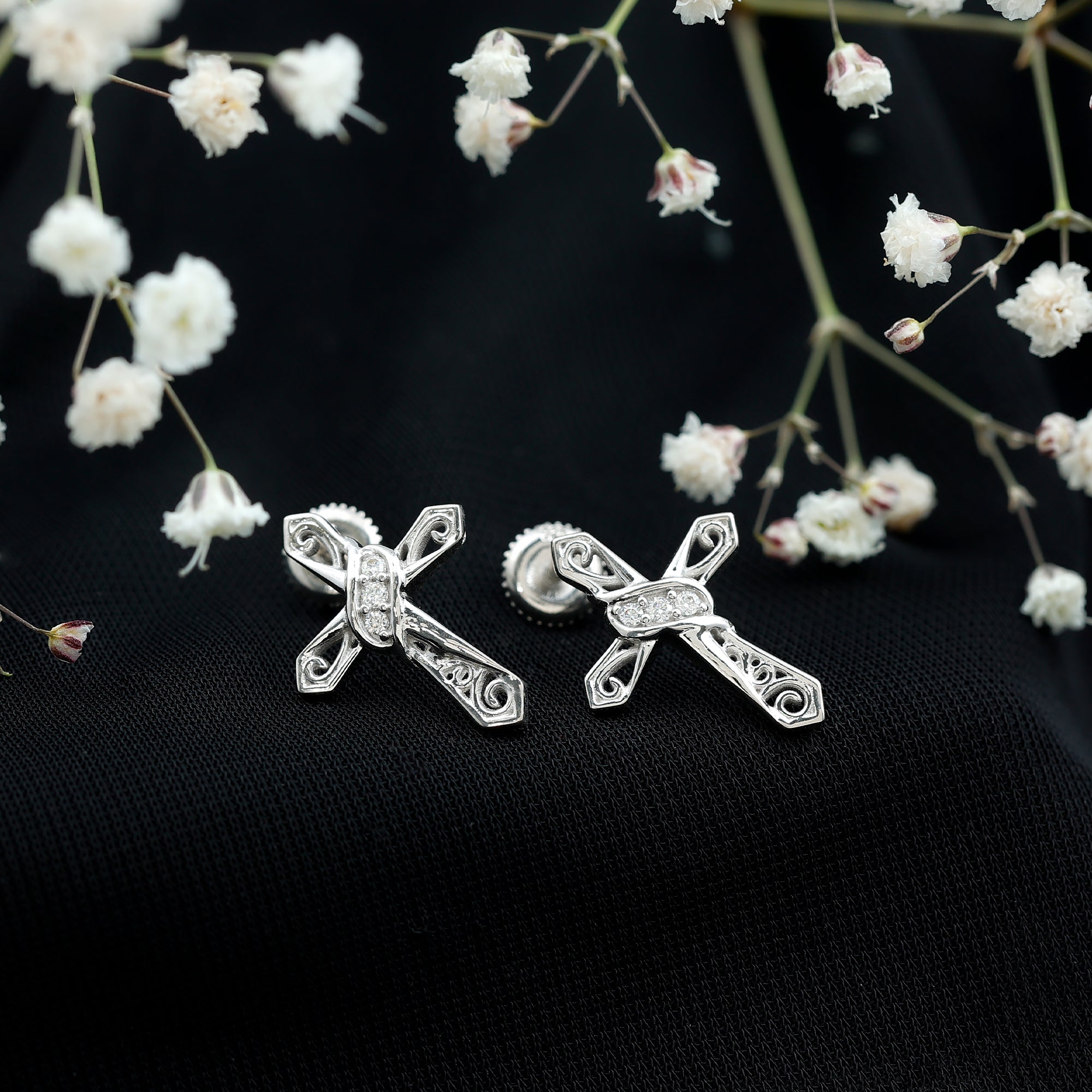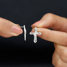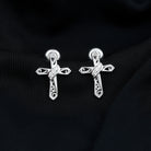 Art Deco Inspired Moissanite Cross Stud Earrings in Silver
