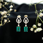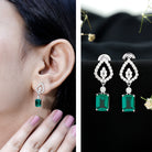 Art Deco Lab Grown Emerald Diamond Drop Earrings With Screw Back