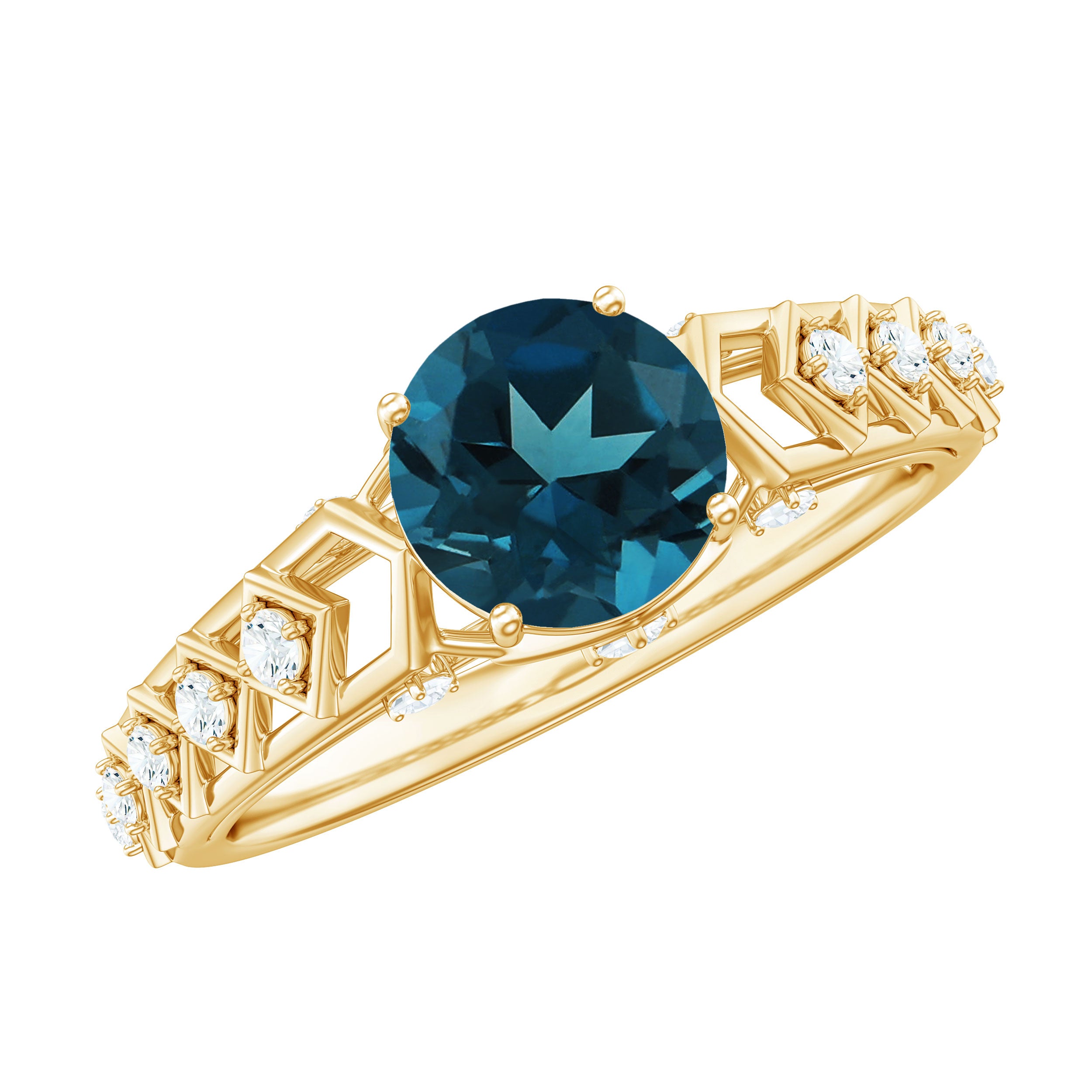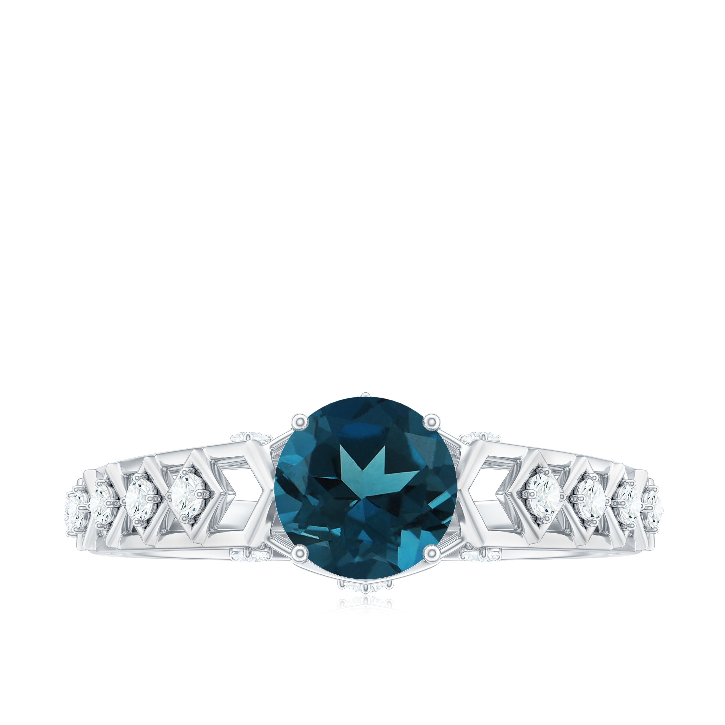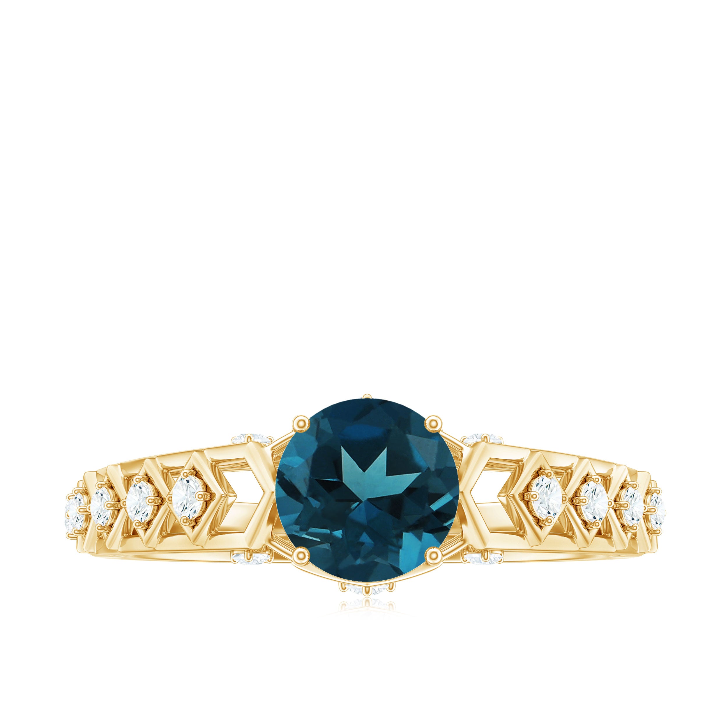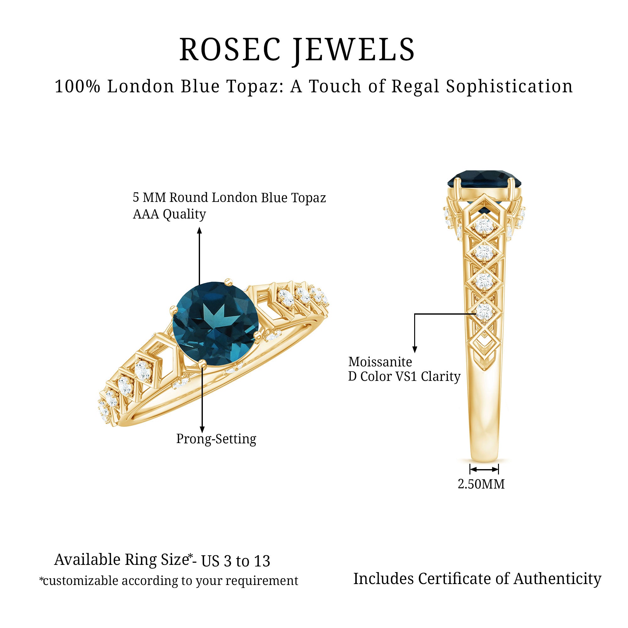 If you are drawn to vintage charm with a bold twist, this London Blue Topaz Engagement Ring might just be the one. Designed with a perfect mix of classic style and modern flair, this Art Deco inspired piece is made for the bride who loves standing out while still honoring tradition. At the center is a sparkling 5 MM round London Blue Topaz, set in secure and strong prong setting. The topaz is placed in a beautifully structured band that features geometric patterns inspired by the iconic Art Deco era. The band has a unique openwork design that gives the Antique Looking Engagement Ring a light and airy feel while still being full of character. Adding extra sparkle, small round moissanite stones are placed along the band, catching the light from every angle. These little details give the Blue Topaz Solitaire Ring texture, shine, and a one-of-a-kind vibe. It is a thoughtful design that feels elegant without being over the top. This Vintage Blue Topaz Ring is for the woman who sees her jewelry as an extension of her personality. It is bold but graceful, vintage but fresh, and totally unforgettable. This London Blue Topaz Ring is made to last a lifetime and tell your story in style.