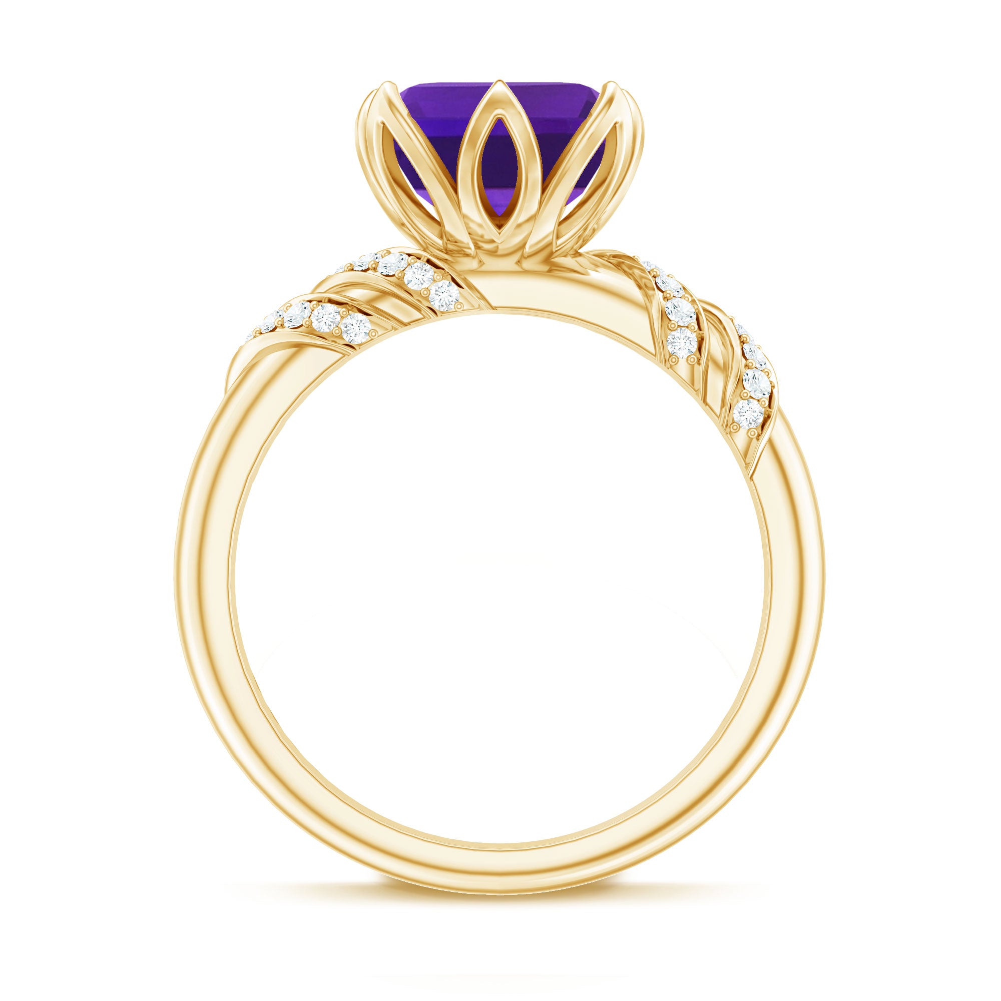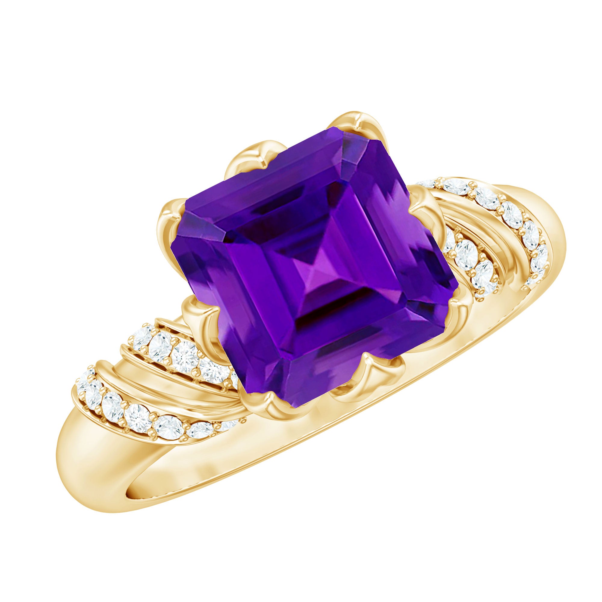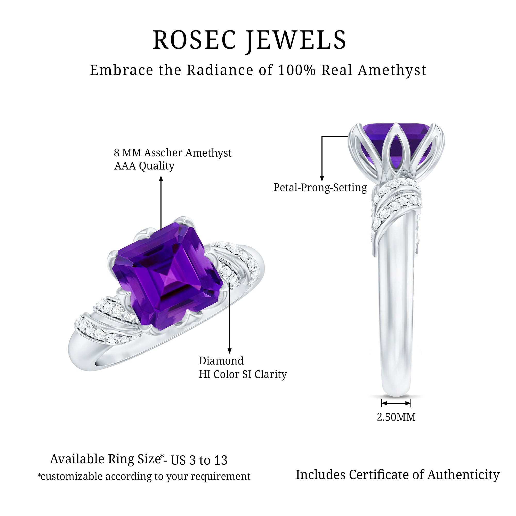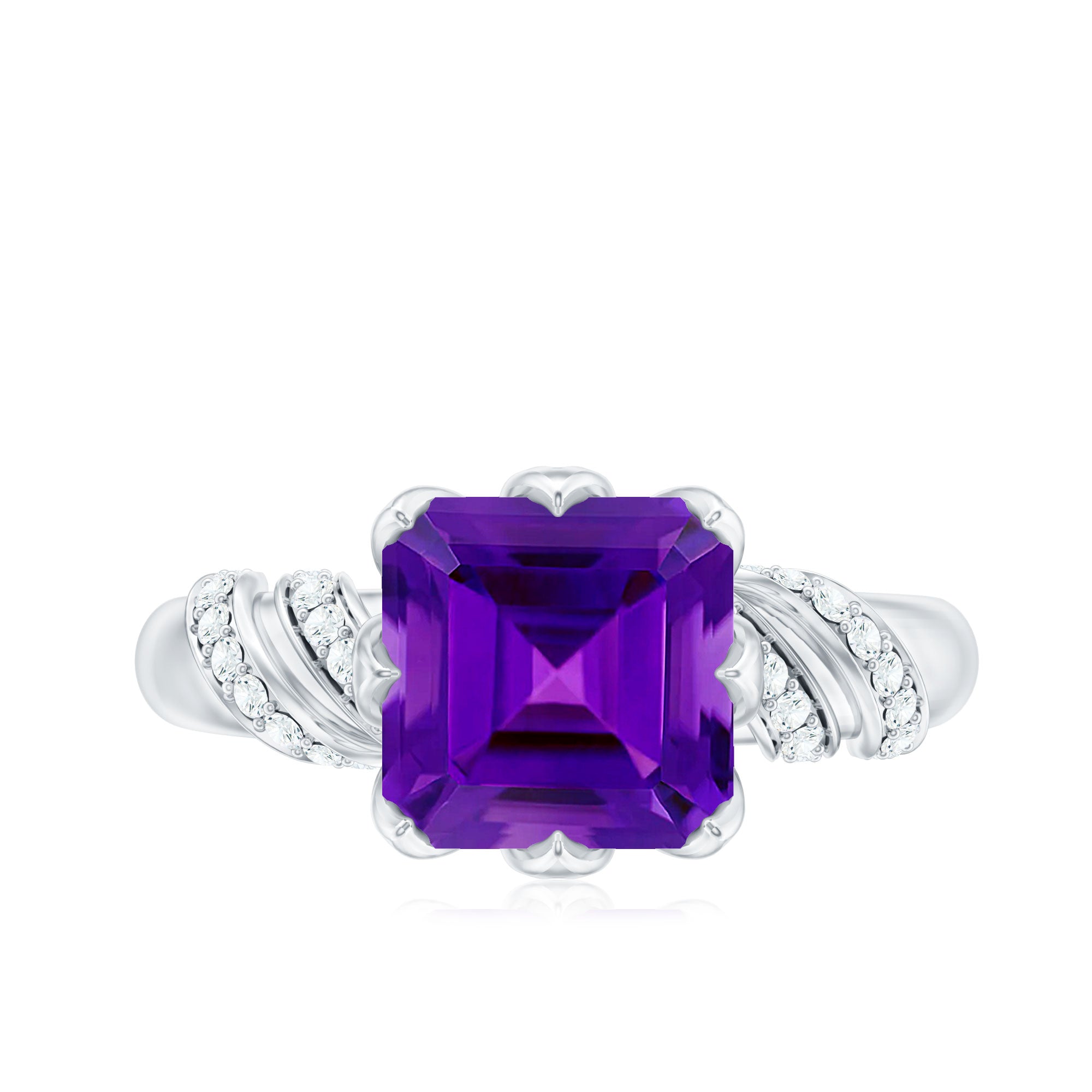 Asscher Cut Amethyst Designer Engagement Ring with Diamond