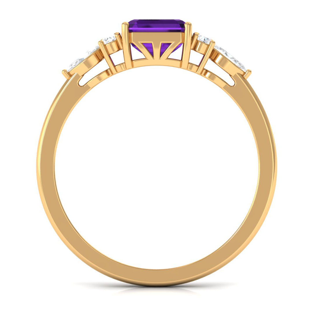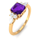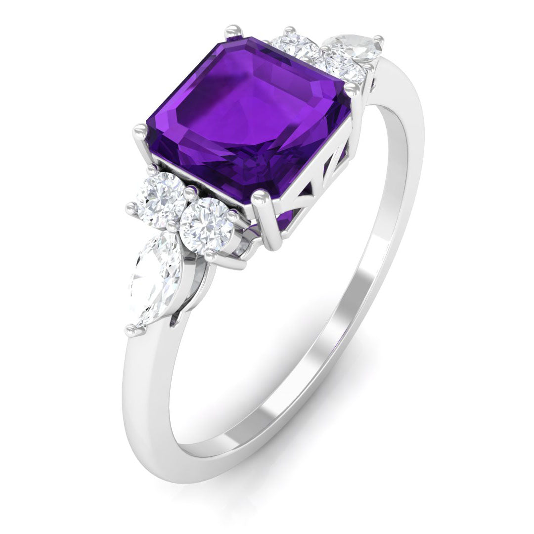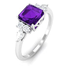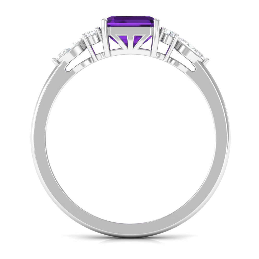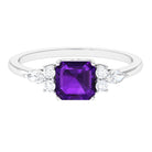Asscher Cut Amethyst Solitaire Engagement Ring with Diamond Trio