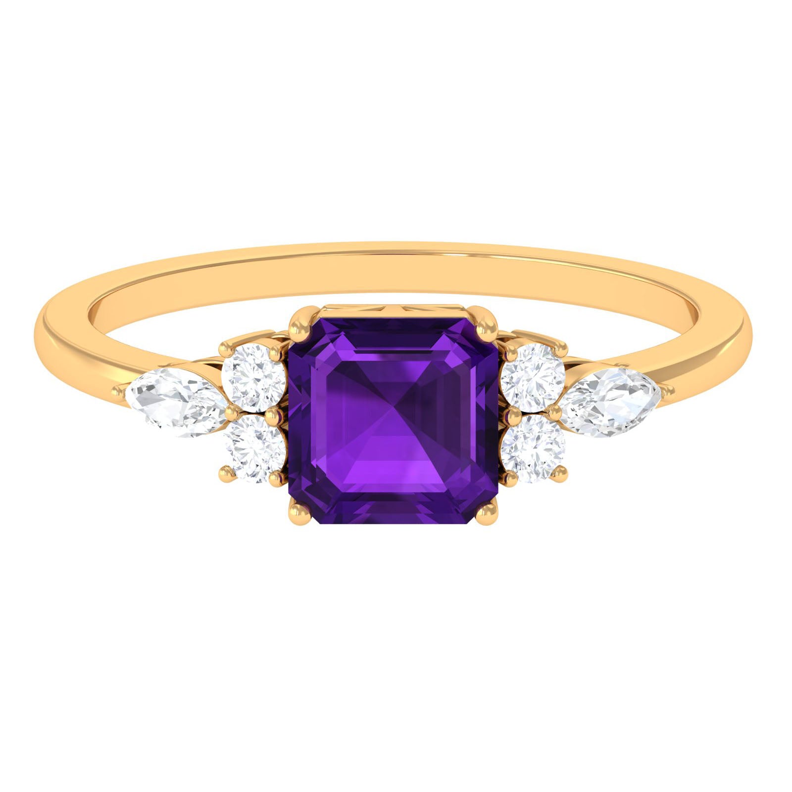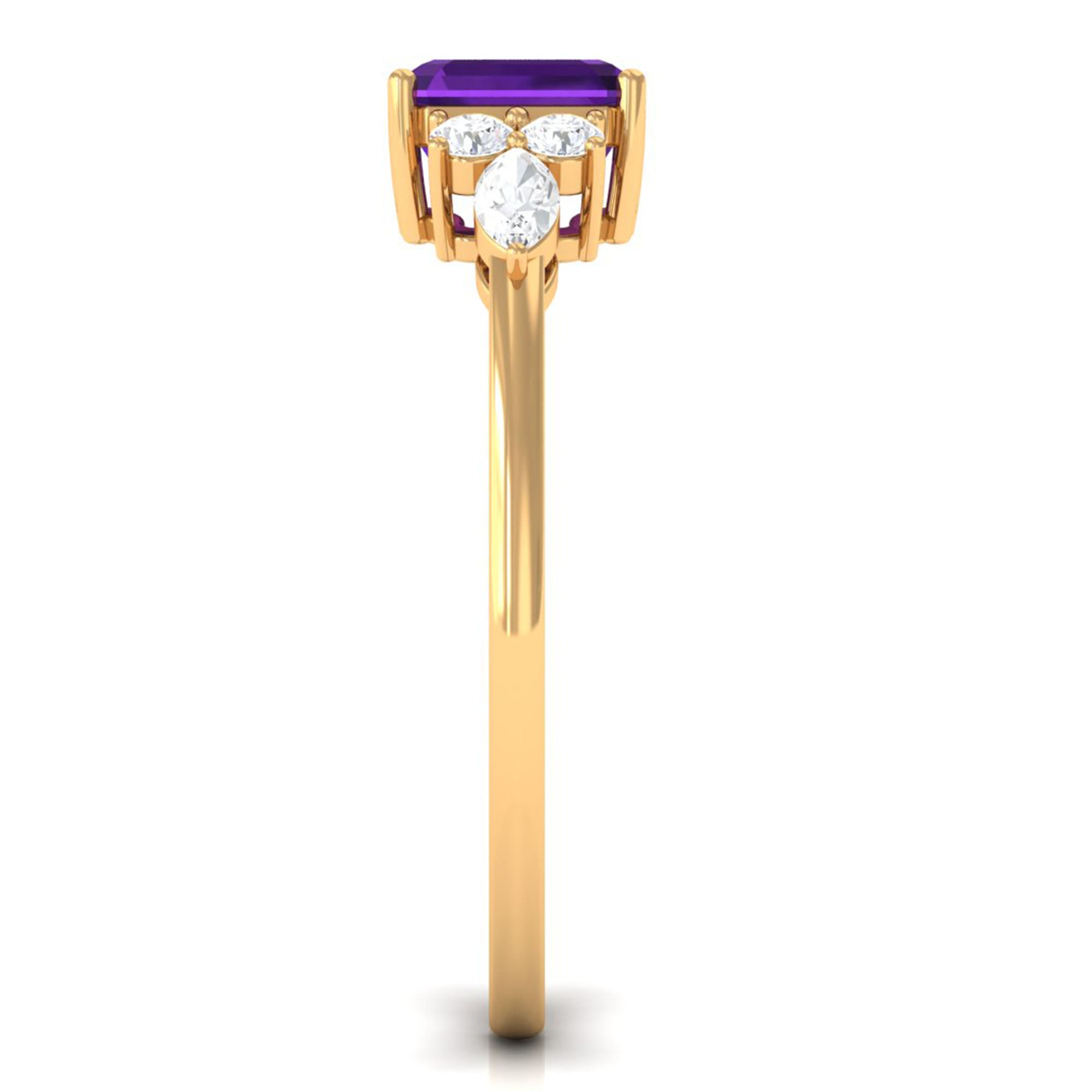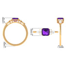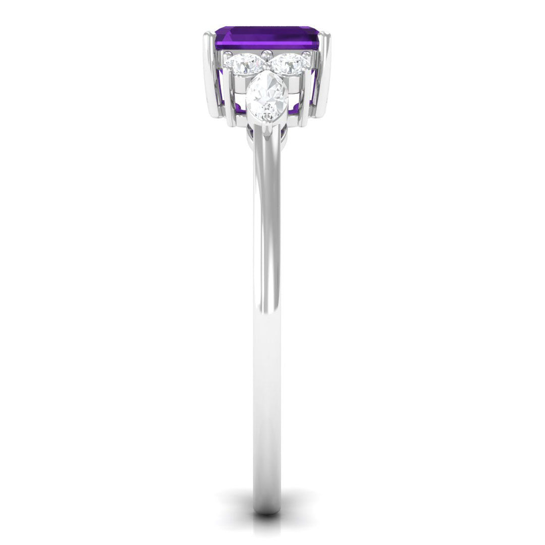 Asscher Cut Amethyst Solitaire Engagement Ring with Diamond Trio