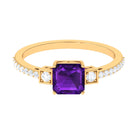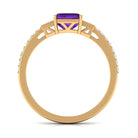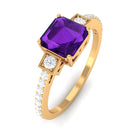Asscher Cut Amethyst Solitaire Engagement Ring with Diamond