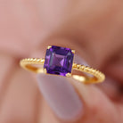 Asscher Cut Amethyst Solitaire Ring with Twisted Rope Details