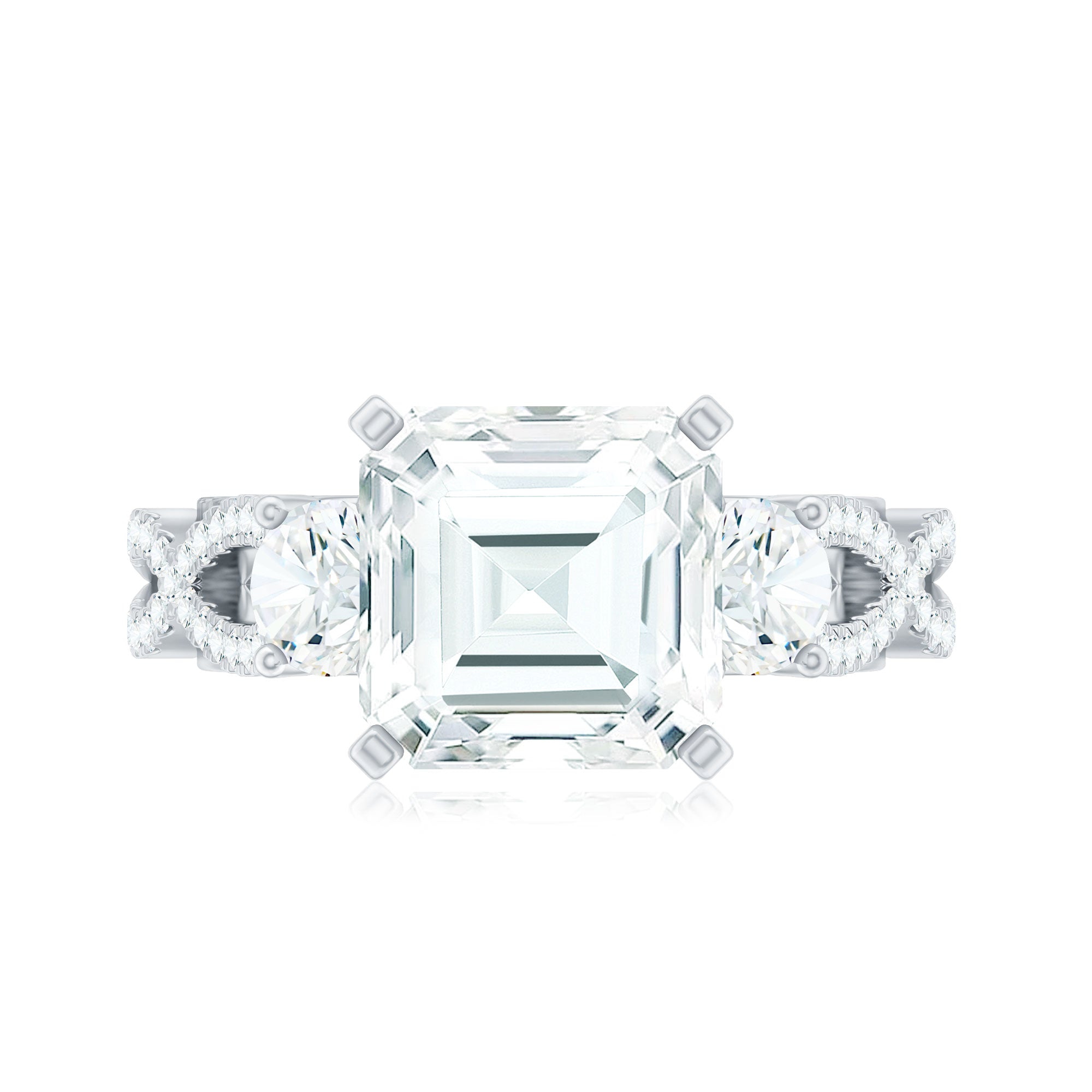 Asscher Cut Certified Moissanite Vintage Looking Engagement Ring