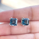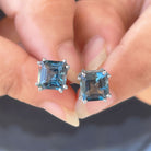 Asscher Cut London Blue Topaz Solitaire Stud Earrings