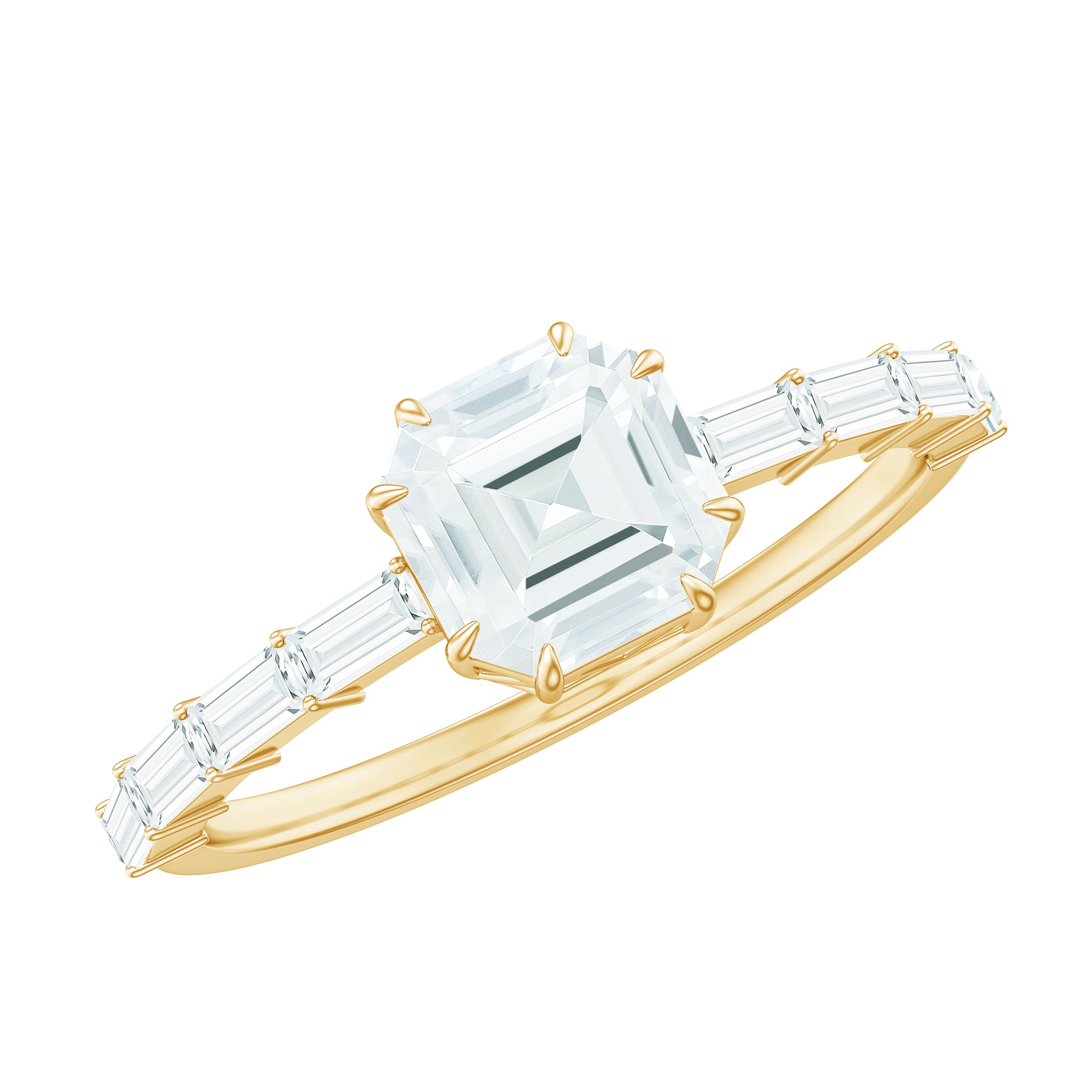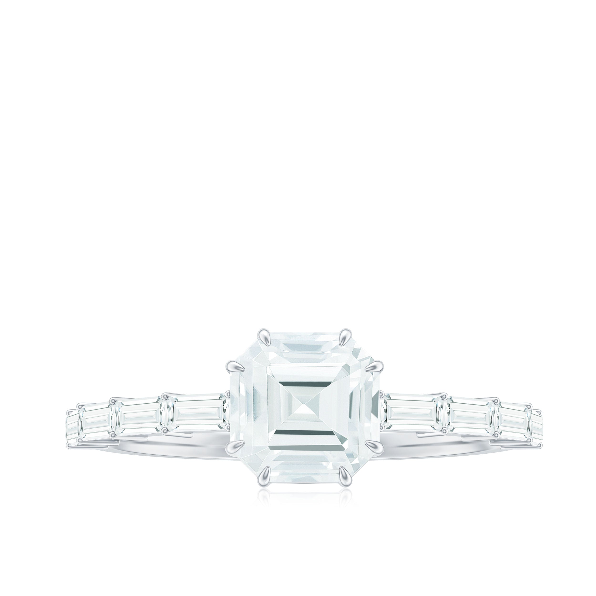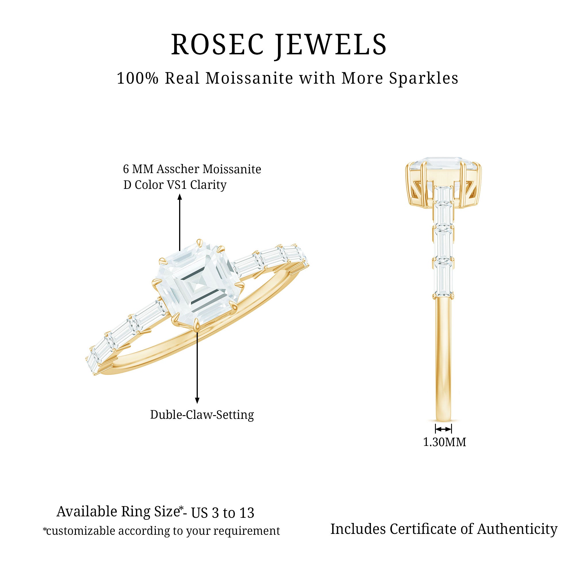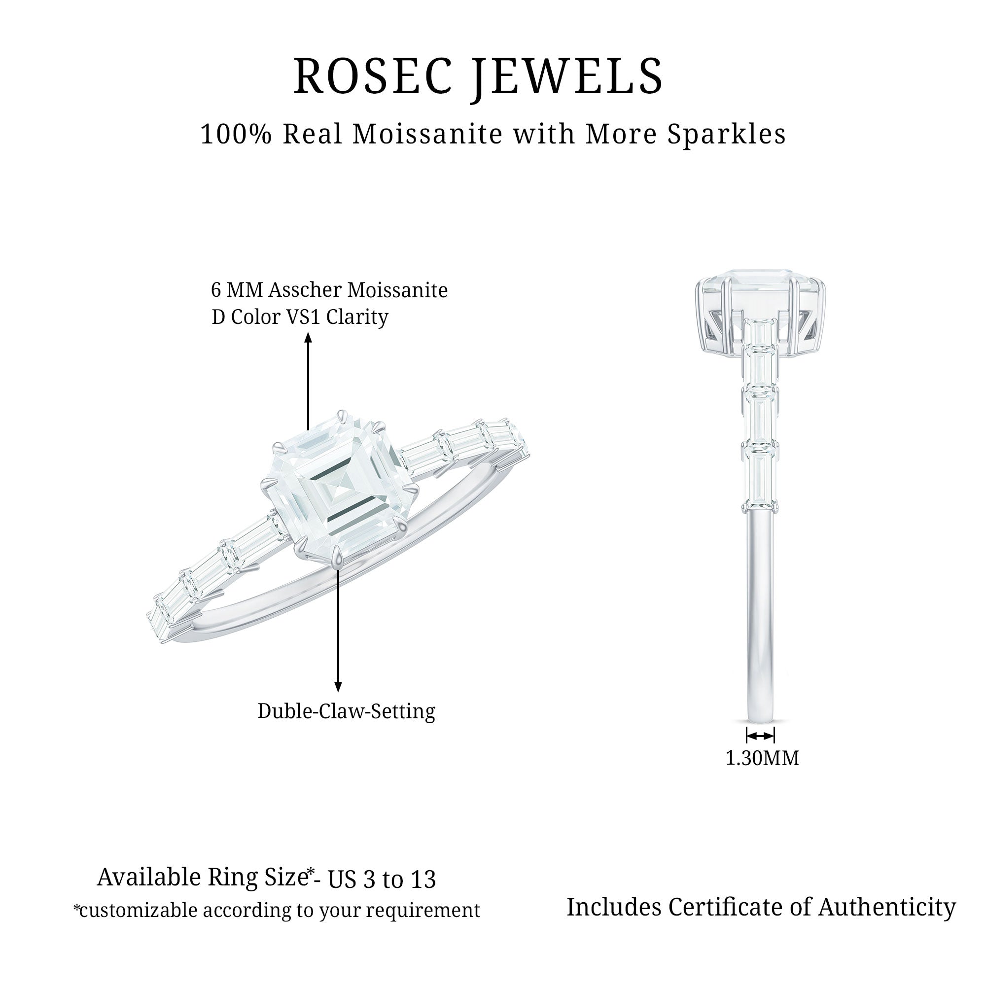 Asscher Cut Moissanite Engagement Ring with Baguette Side Stones