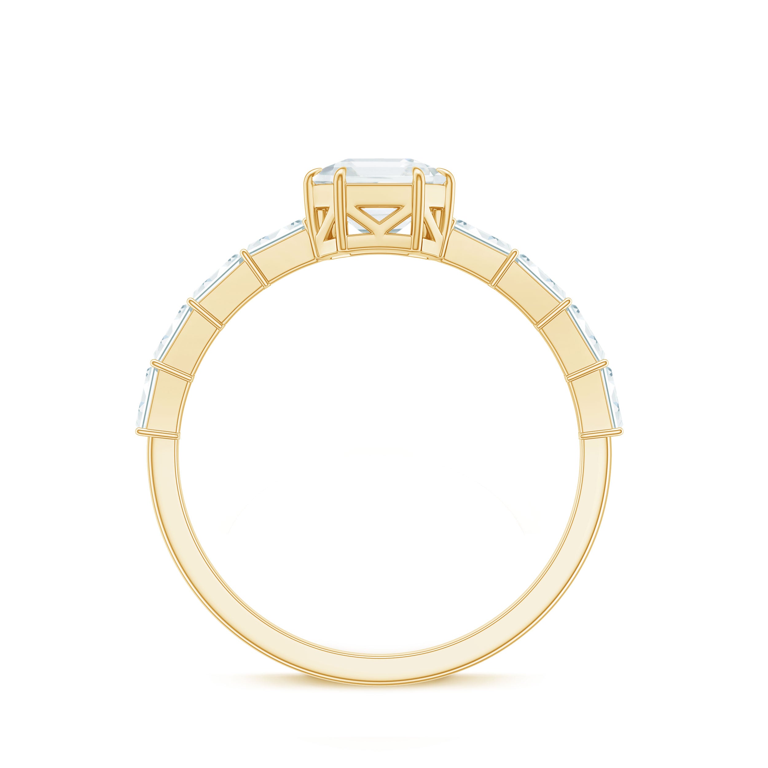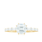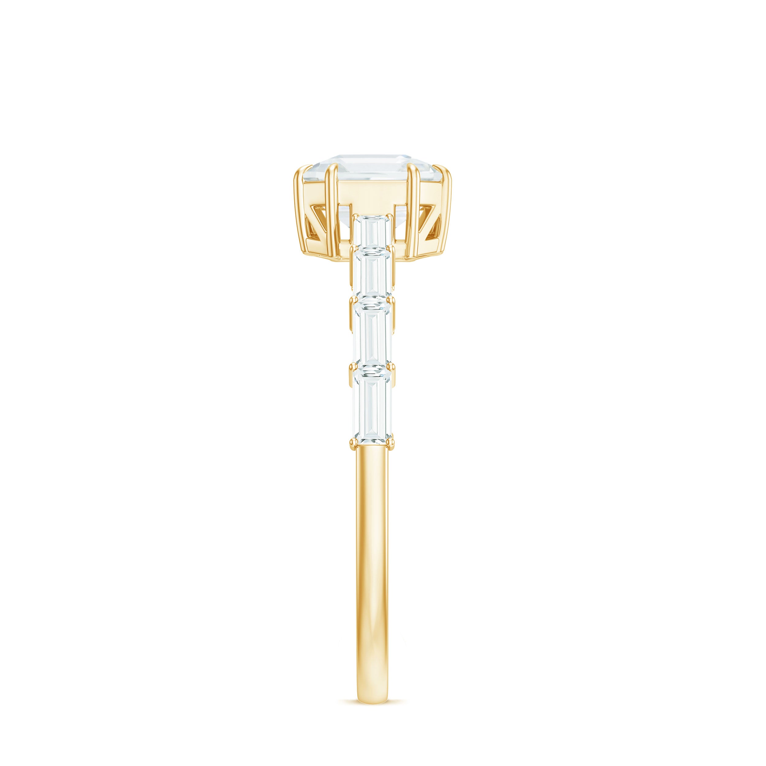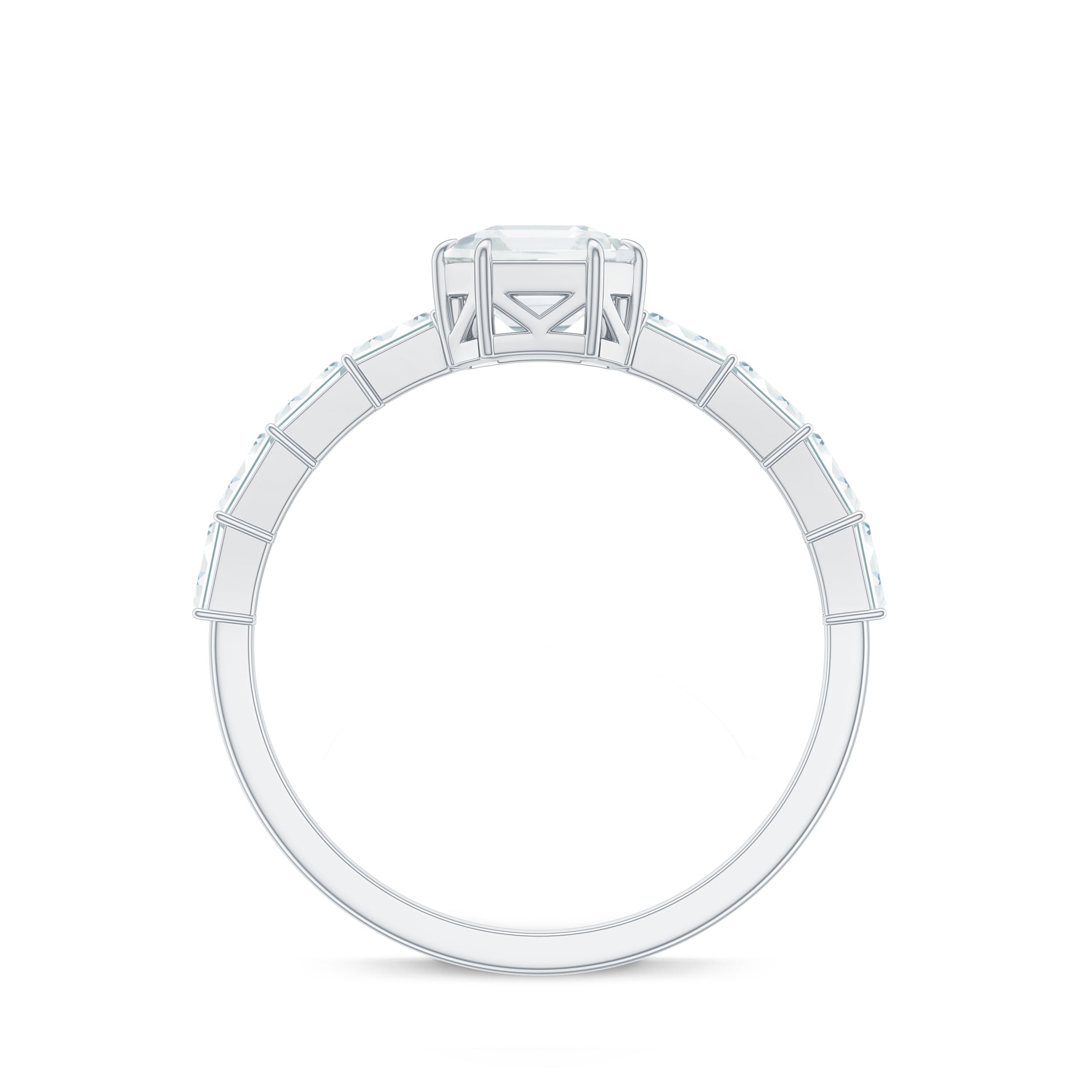 Asscher Cut Moissanite Engagement Ring with Baguette Side Stones