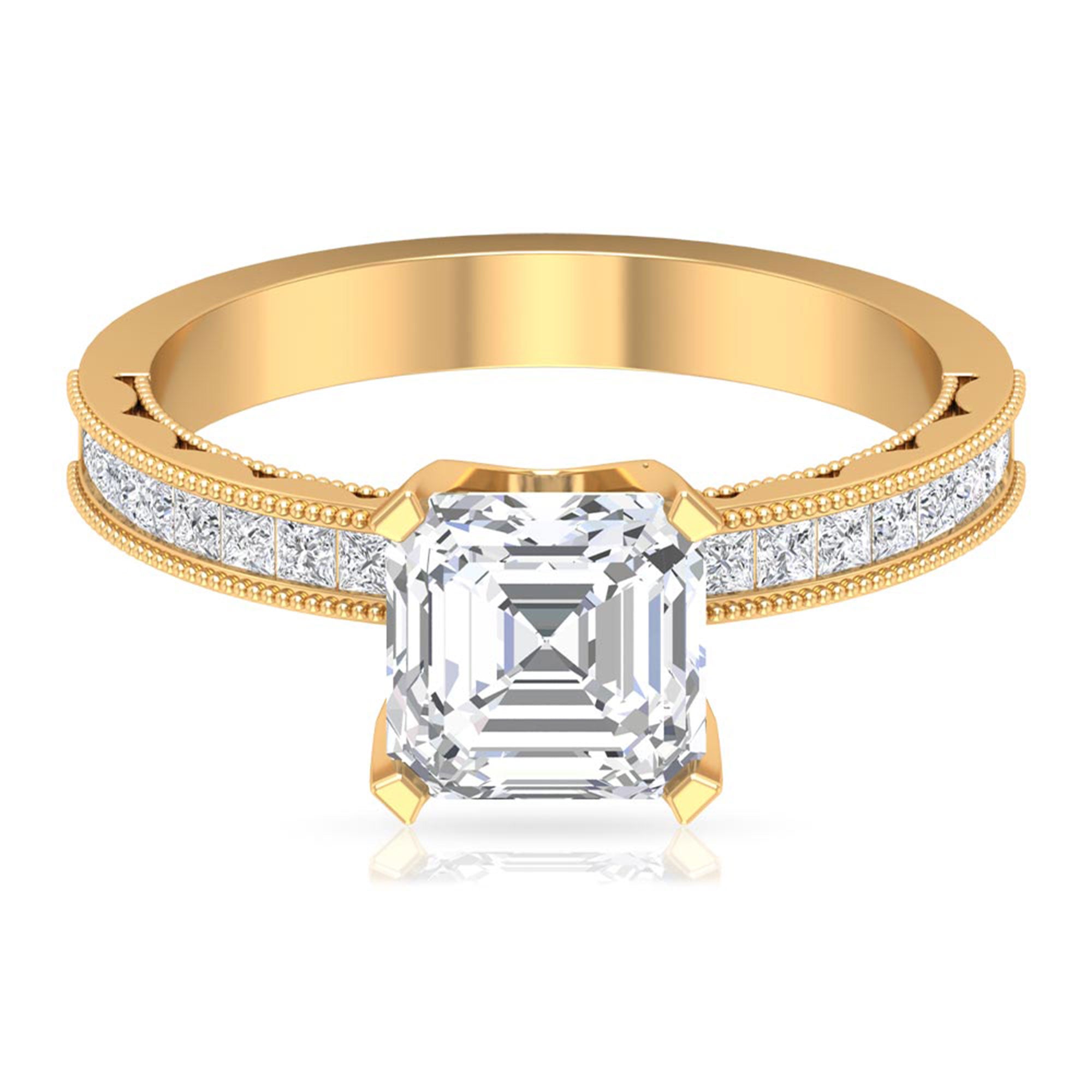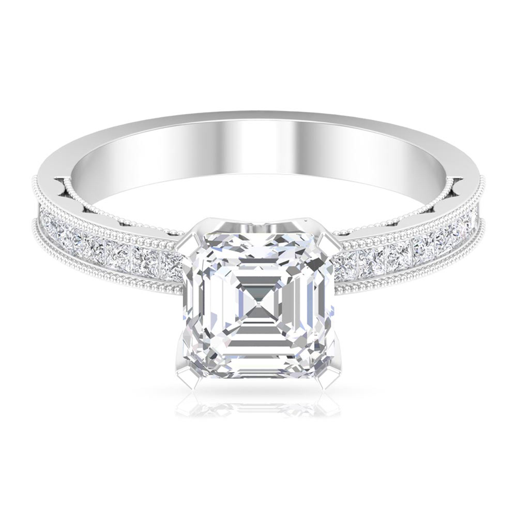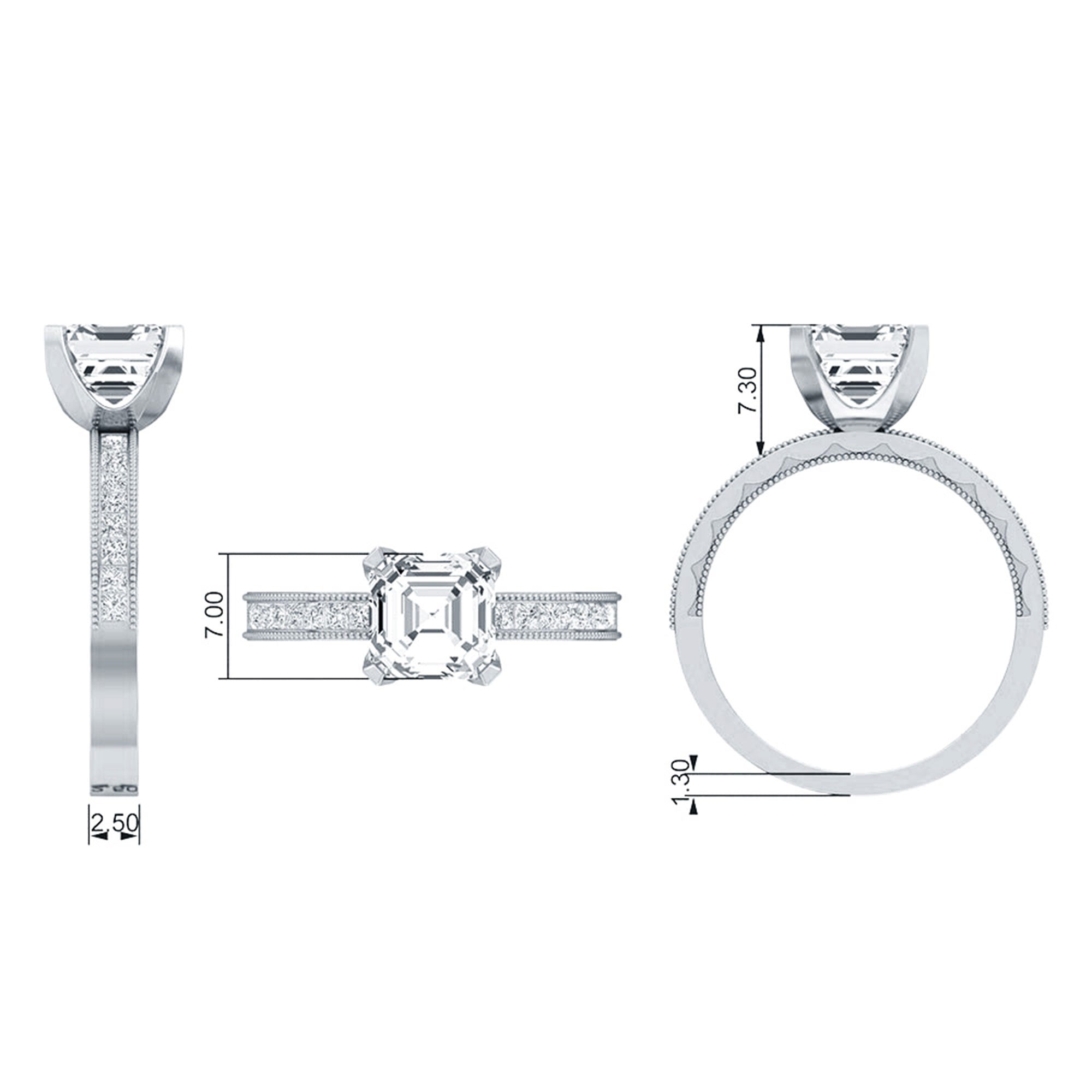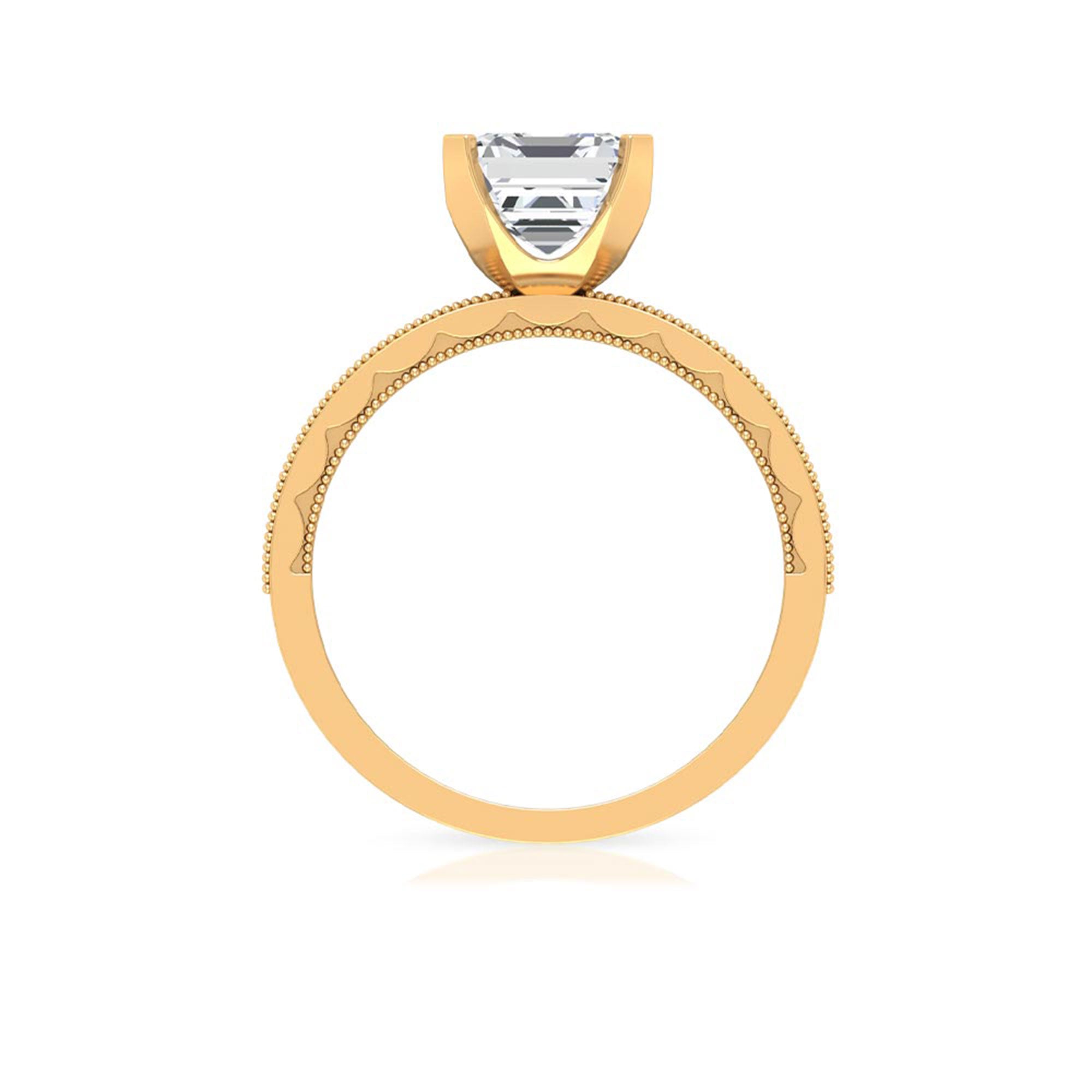 Celebrate loves brilliance with this Solitaire Engagement Ring embellished with Asscher Shape Zircon gemstone set as a center stone with Princess Cut Zircon Side Stones and Beaded Detailing. A statement of love and devotion, its a perfect choice to mark the beginning of a new chapter in your journey together.