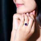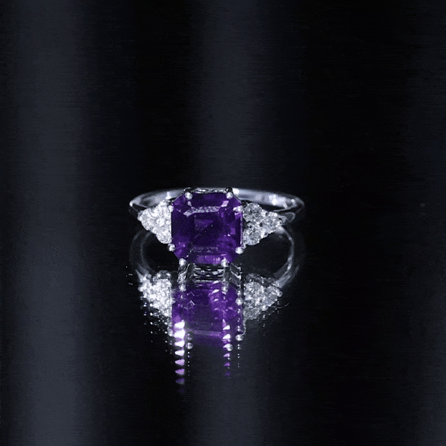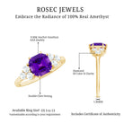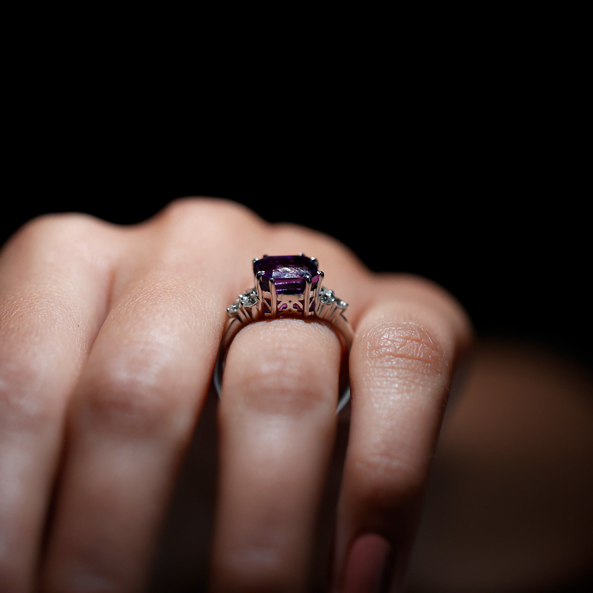 This simple and stunning Engagement Ring features an Asscher Cut Amethyst secured by Double Claw Setting and flanked by Round Shape Diamond Trio. • This Solitaire Ring is crafted with Hallmarked Metal to make it enchanting jewelry. Give a new meaning to your love by surprising your favorite person with this Wedding Ring.