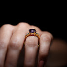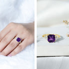 Asscher Solitaire Amethyst Engagement Ring with Diamond Trio