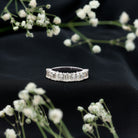 Some promises are softly spoken, while others are cherished for a lifetime - this Moissanite Wedding Band conveys deep meaning without uttering a single word. Crafted with elegance and brilliance, this Half Eternity Band serves as a beautiful symbol of everlasting love. It showcases a breathtaking array of alternating round and baguette cut moissanites, with each stone meticulously chosen for its flawless D color and VS1 clarity, providing unparalleled sparkle and purity. Expertly set in a sophisticated prong setting that secures each gem, this Wedding Anniversary Ring guarantees stunning brilliance from every perspective. The half eternity design strikes the perfect balance of sparkle while ensuring comfort for everyday wear. Whether worn alone for a sleek look or stacked with your engagement ring or another band for a more layered appearance, this Moissanite Eternity Ring is as adaptable as it is gorgeous. It makes an ideal gift for anniversaries, birthdays, weddings, or simply to celebrate yourself. Every time you glance at your hand, it will remind you, or someone dear to you, of the moments that truly matter.