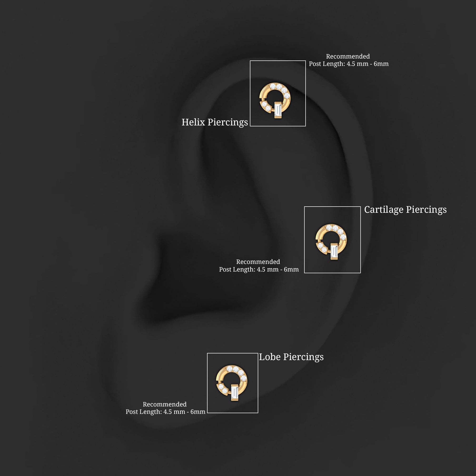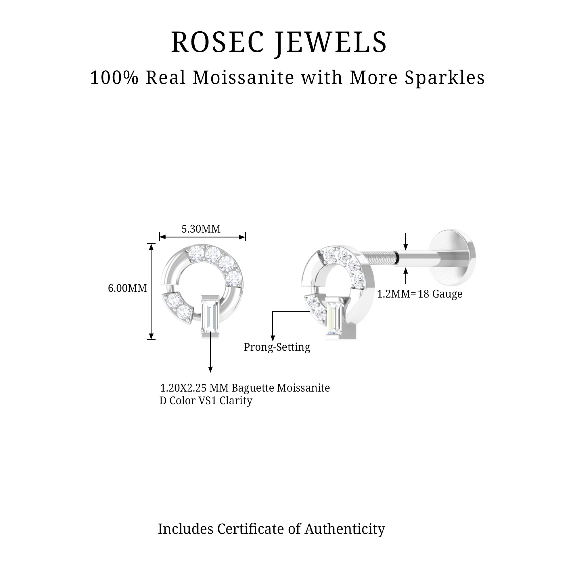 Baguette and Round Moissanite Open Circle Cartilage Earring