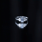 Mark the Promise of love with this Aquamarine Moissanite Ring, precisely crafted with 14K White Gold Plated Silver. The ring features a 3X6 MM Baguette Shape Aquamarine secured in Bezel Setting and adorned with a cluster of Moissanite stones on both sides. The ring beholds the classic shine of AAA Quality Aquamarine and D-VS1 Moissanite, which makes the ring perfect for marking the promise of forever togetherness. This Promise Ring will surprise your lady with this thoughtful choice of a present. This Bezel Set Ring will be delivered to you in a premium quality velvet pouch with the certificate of authenticity.