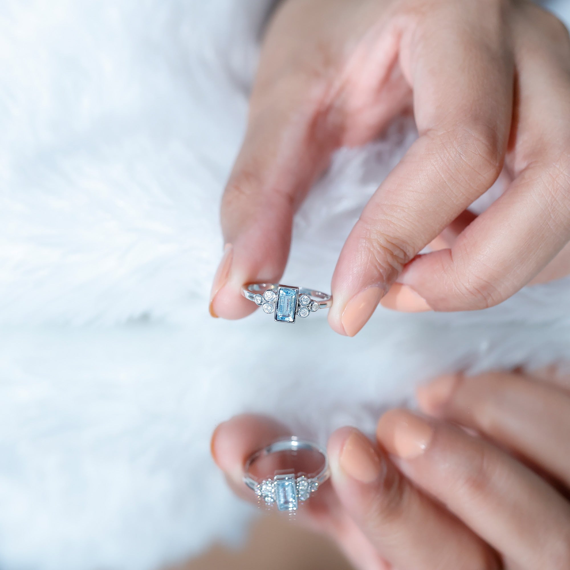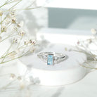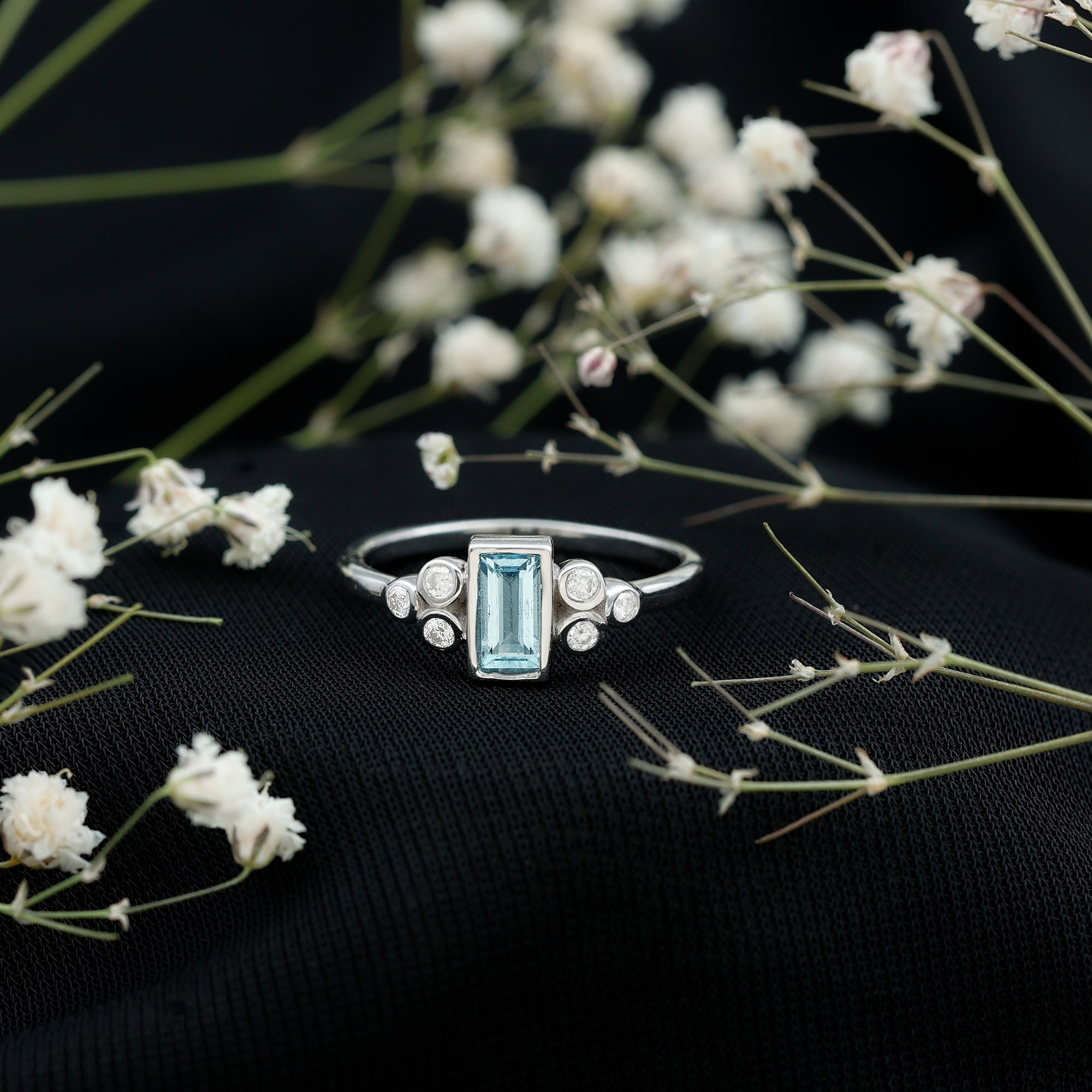 Baguette Cut Aquamarine Promise Ring with Moissanite