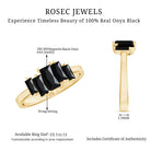 This Black Onyx Ring is a quiet stunner, made for those who appreciate effortless style. With a classic design and bold energy, it is the kind of ring that gets all the attention. The 5 Stone Anniversary Ring features five baguette cut black onyx stones set in an uneven style, giving it a natural, flowing feel across your finger. It is sleek, simple, and full of character, perfect for everyday wear or those special moments. Held securely in prong setting, these stones are full of boldness and charm. Whether you are working, relaxing, or dancing the night away, this Baguette Anniversary Ring is made to keep up with your life. Crafted with AAA quality black onyx, it is more than just good-looking, it is made to last. Onyx is also known as the birthstone for December and a powerful stone for Leos, symbolizing strength, focus, and calm. That makes it a meaningful gift for someone special. Wear it solo for a statement or stack it with your other favorites, the choice is all yours. However you wear it, it brings a touch of bold elegance to your day. Because your jewelry should feel as strong, stylish, and unique as you are.