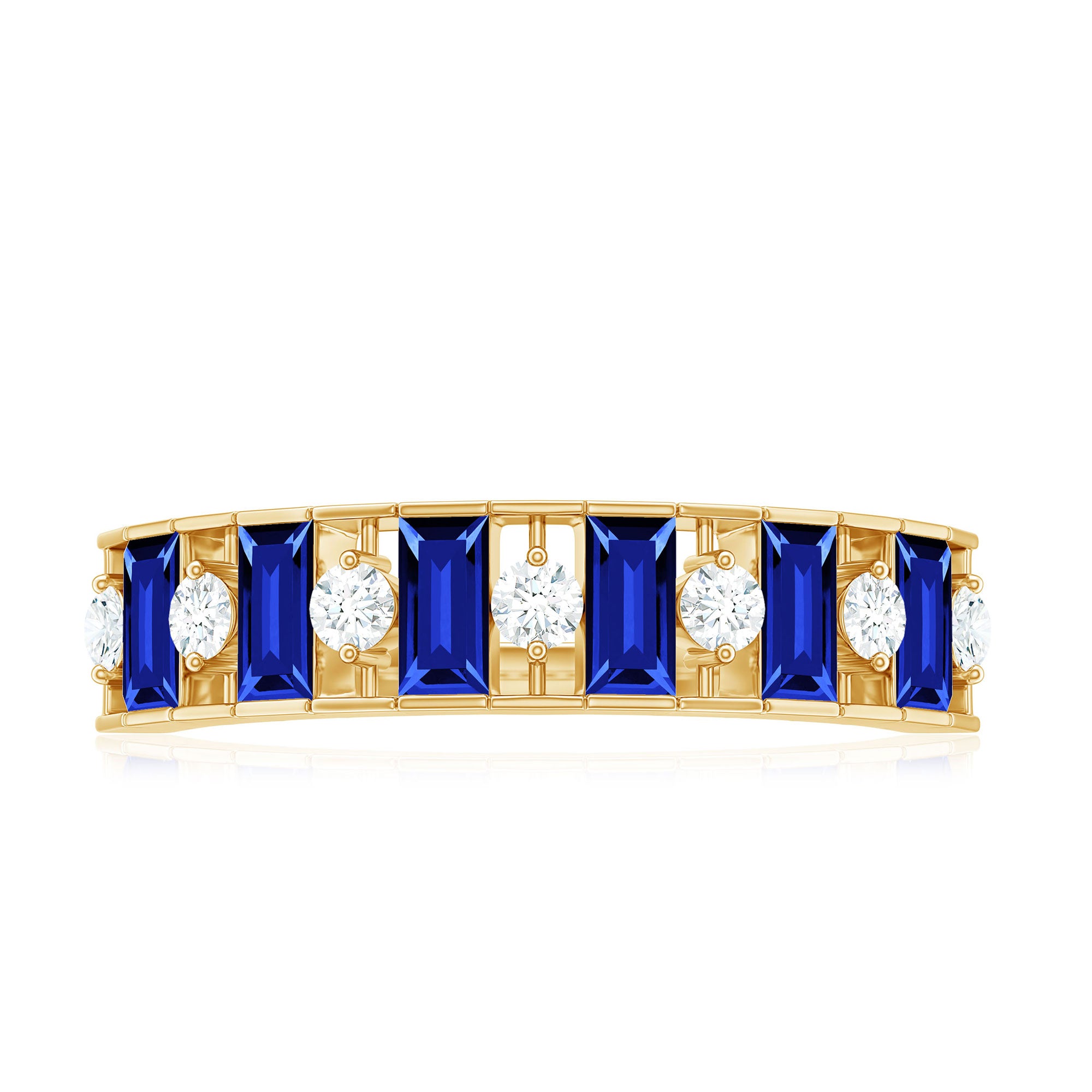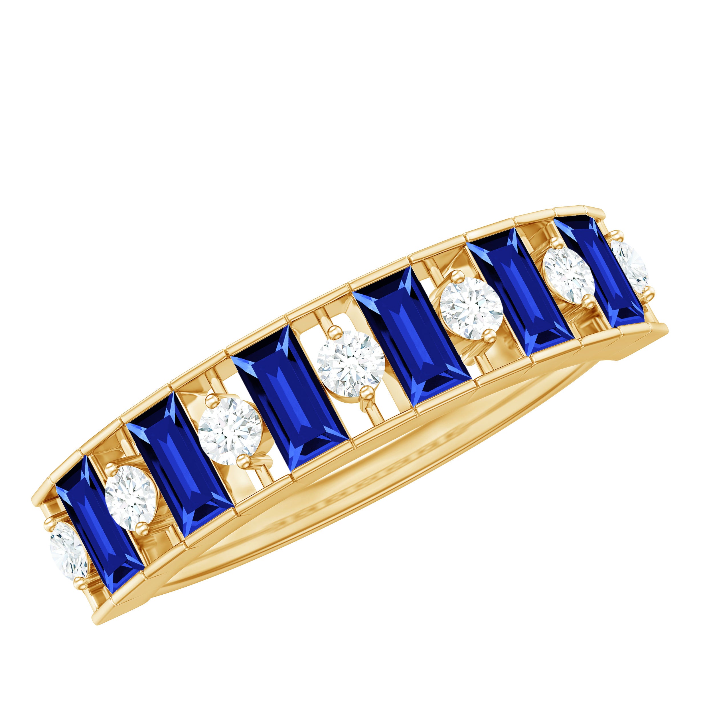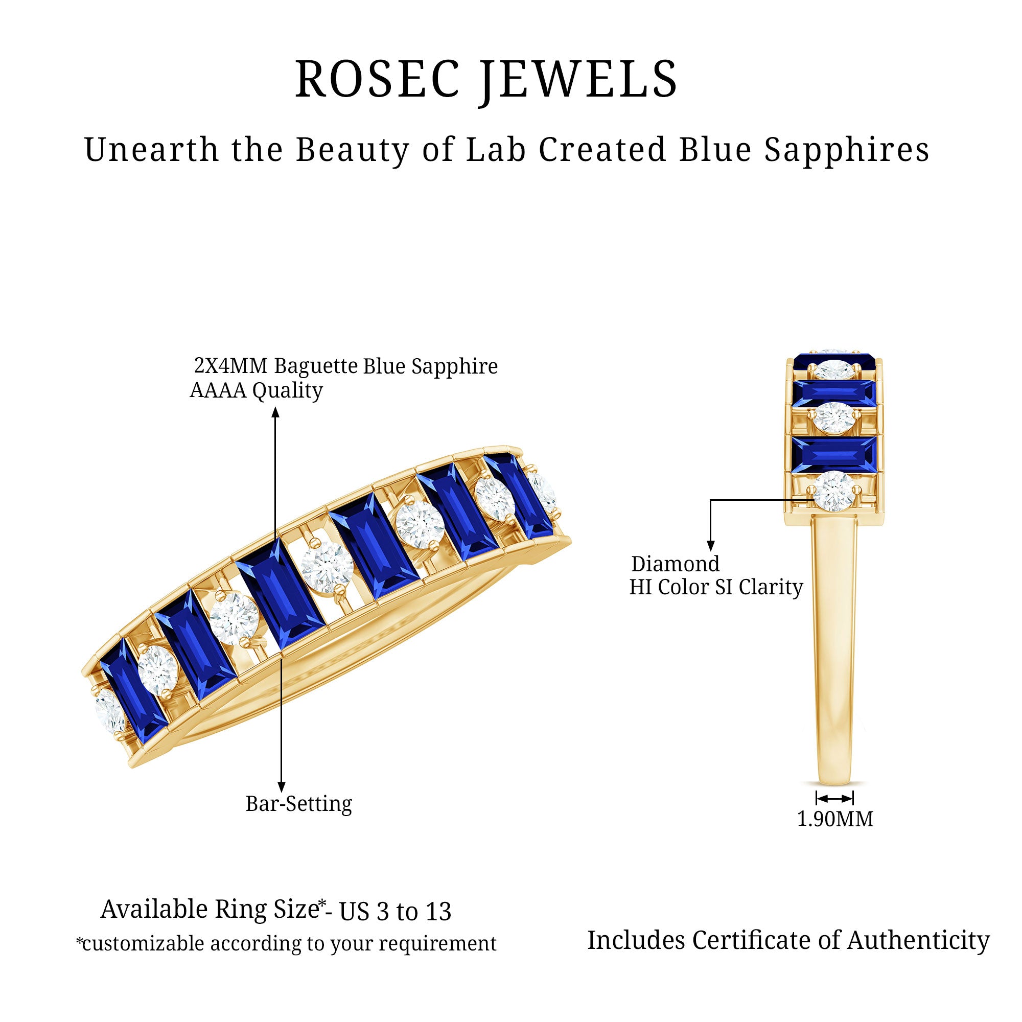 Baguette Cut Created Blue Sapphire Classic Half Eternity Ring with Diamond