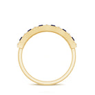 Make your Valentines Day special by gifting your loved one this beautiful Half Eternity Band Ring. This Semi Eternity Ring features a half band design, adorned with Baguette Shape Lab Created blue sapphire set in a bar setting and round Diamond set in a prong setting, all crafted in gold metal. This Created blue sapphire Half Eternity Band Ring is sure to delight your lady love.