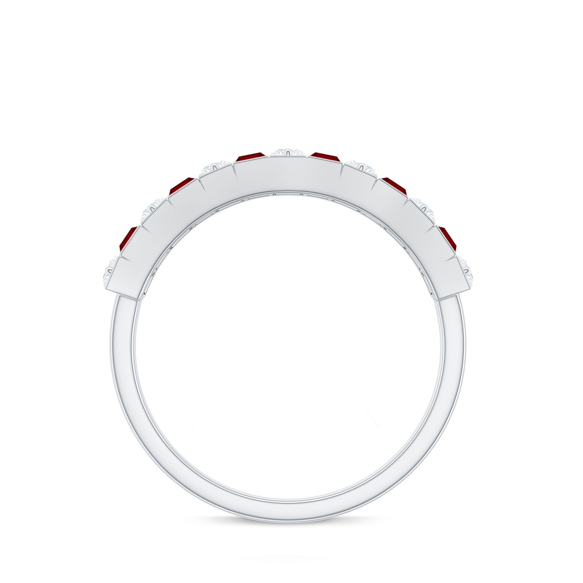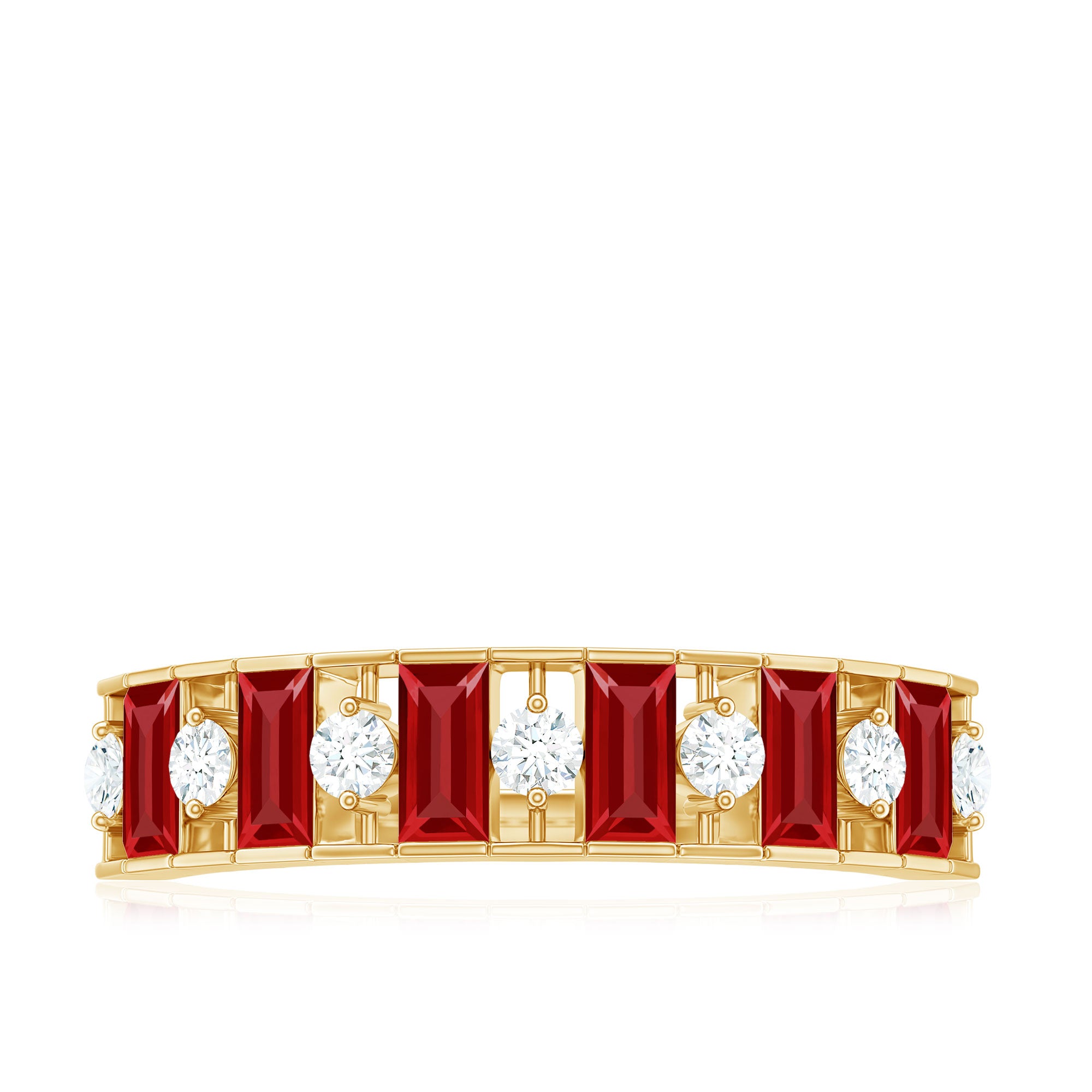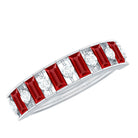 Baguette Cut Created Ruby Classic Half Eternity Ring with Diamond