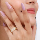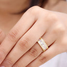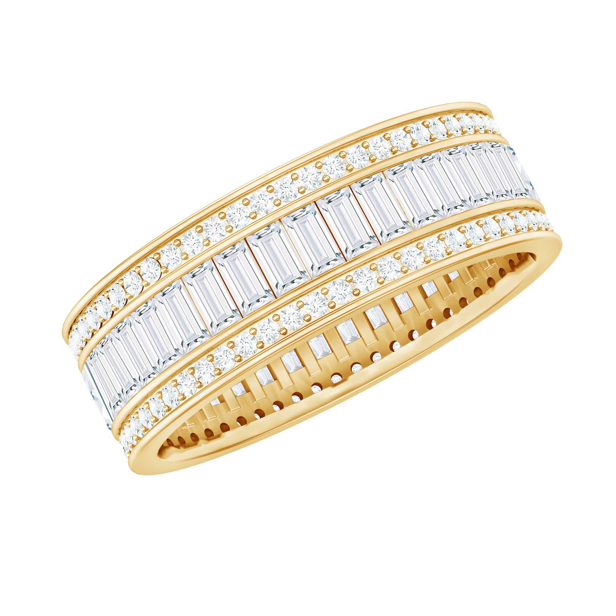 Embark on a journey of love and elegance with this enchanting Eternity Band Ring, a symbol of eternal devotion that will truly captivate your heart. Adorned with a striking design, this Wedding Band Ring showcases a stunning row of Baguette Shape Zircon gemstones securely nestled within a Channel Setting, beautifully framed by two rows of Round Shape Zircon gemstones. Each facet of this exquisite wide band ring represents the enduring beauty and timelessness of your love, making it the perfect choice for commemorating your special bond and commitment.