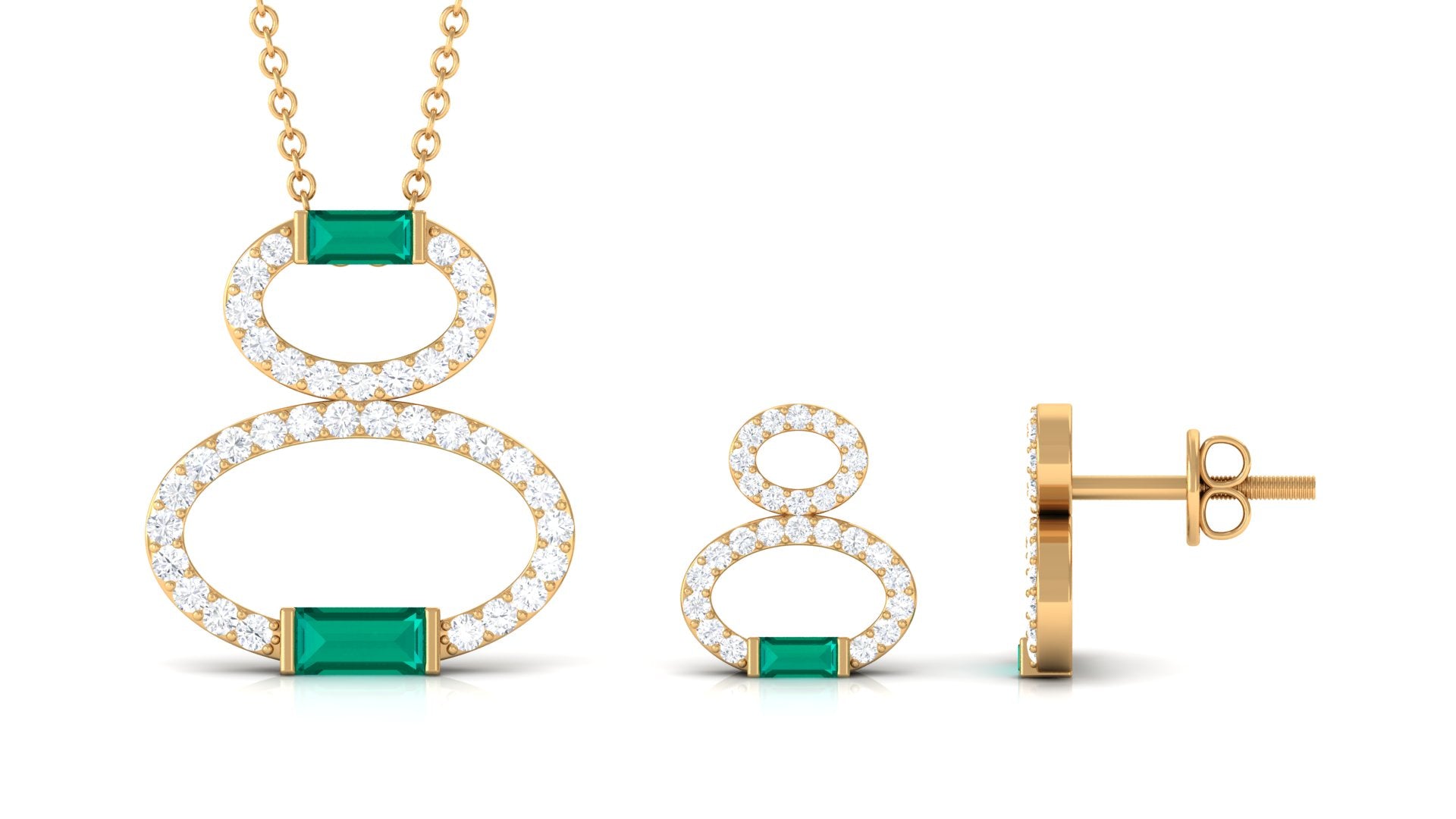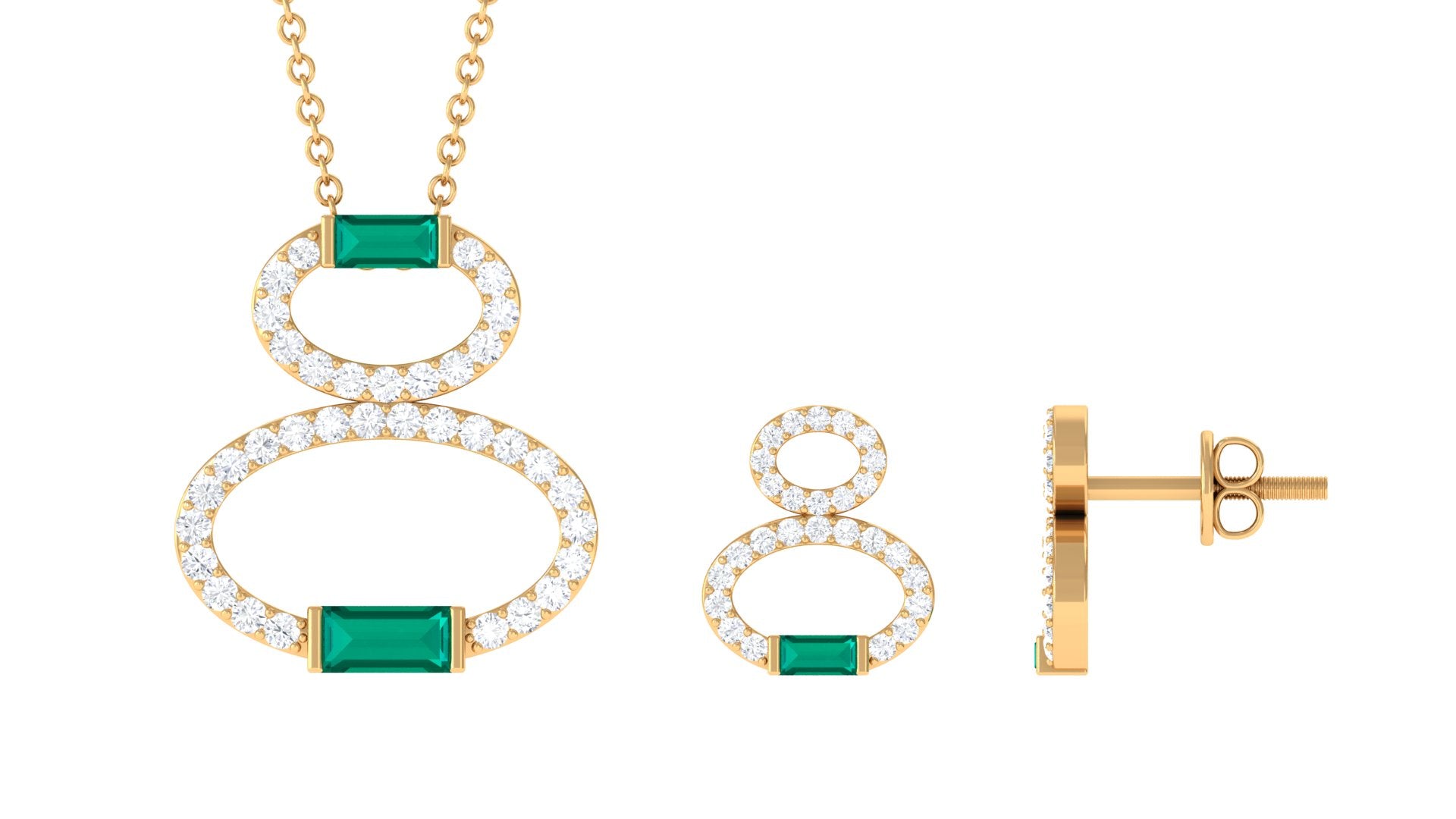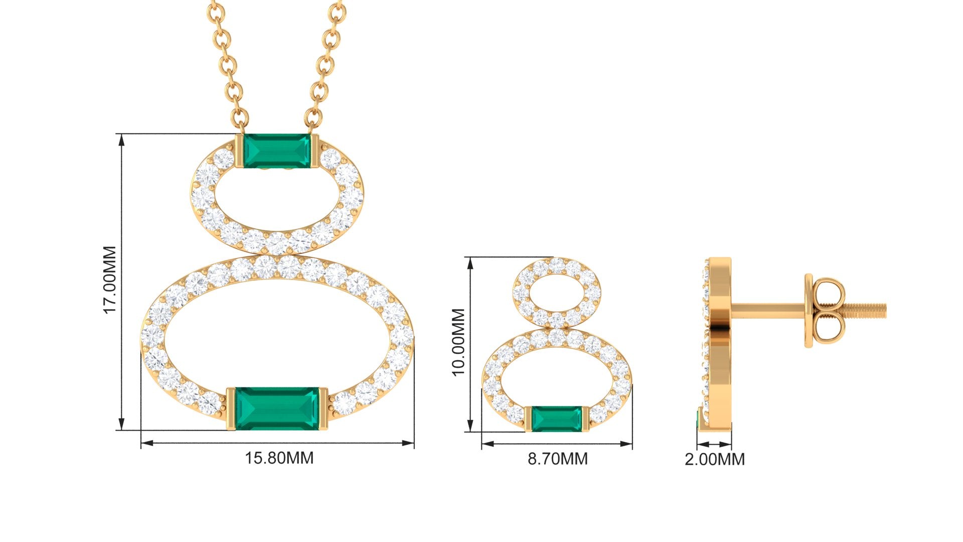 Add a touch of classic elegance to your jewelry collection with this beautiful Jewelry Set. Featuring stunning two Oval-shapes decorated with Baguette Cut Emeralds in a secure bar setting, and sparkling Moissanite stones, this modern Necklace and Earrings Set is the perfect addition to any special occasion or everyday outfit. The timeless design of this set ensures that it will be cherished for years to come.