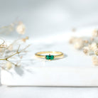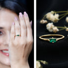 Sleek, simple, and full of quiet charm, this Emerald Promise Ring is crafted in 14k yellow gold plated silver and showcases a modern love story through its clean lines and elegant form. At the heart of the Minimalist Ring lies a baguette cut lab created emerald, set in east-west style in a secure prong setting, giving the ring a contemporary look while maintaining timeless grace. The single stone, perfectly centered on a smooth, polished band, symbolizes one promise, one love, and one future, making it an ideal gift for someone close to your heart or a sweet reminder of your own journey. Whether it is for a promise, a milestone, or just because, this Baguette Emerald Ring carries meaning without overwhelming your style. Its minimalist band is designed for everyday wear, offering both comfort and a lightweight feel while still looking effortlessly chic. Wear it solo for a delicate statement or stack it with other rings to build your own story, it fits beautifully either way. This Emerald Solitaire Ring is ethically crafted, set with an AAAA quality lab created emerald, which means you are choosing something beautiful inside and out. It comes carefully packaged in a signature jewelry box and includes a gemstone certificate, making it ready for gifting, or keeping.