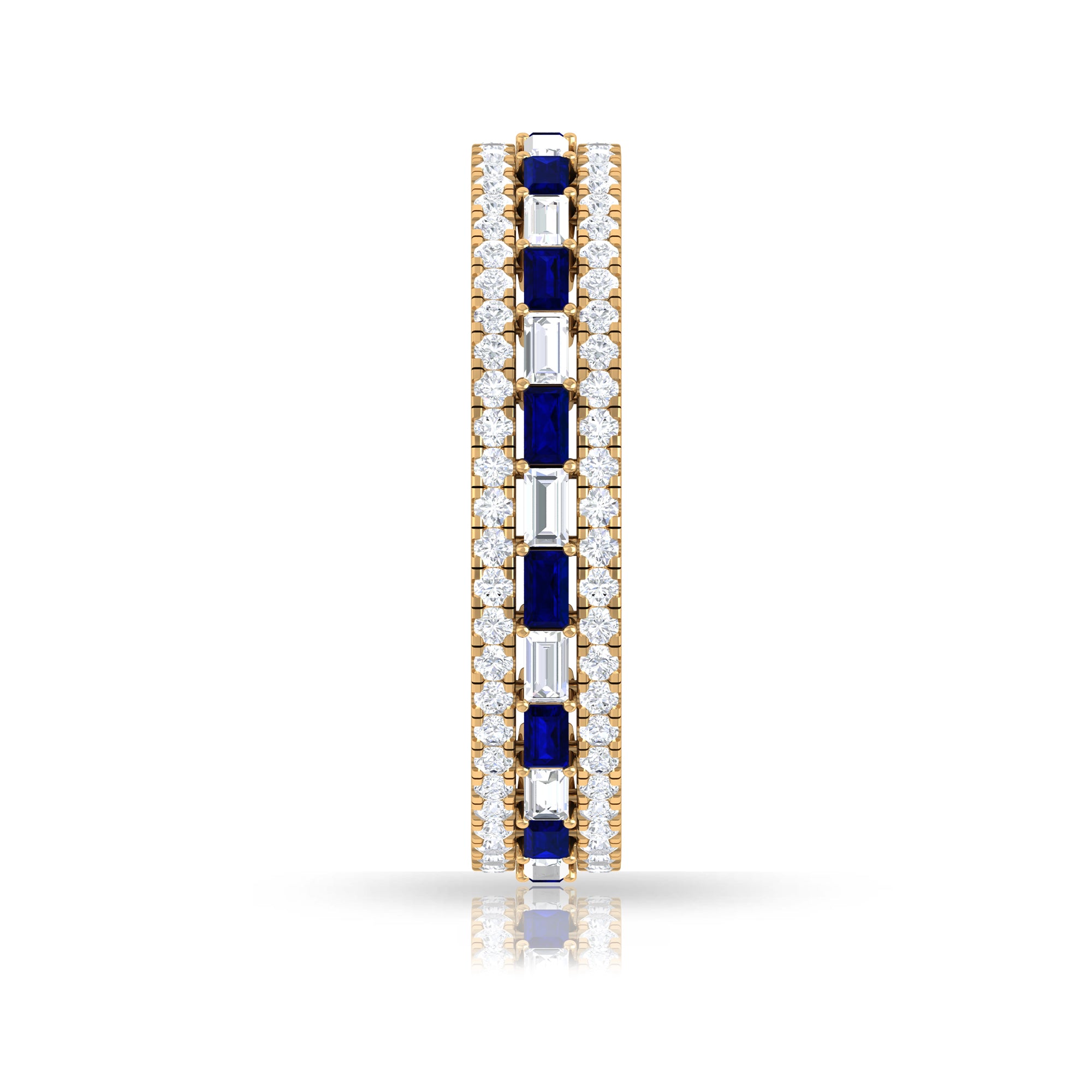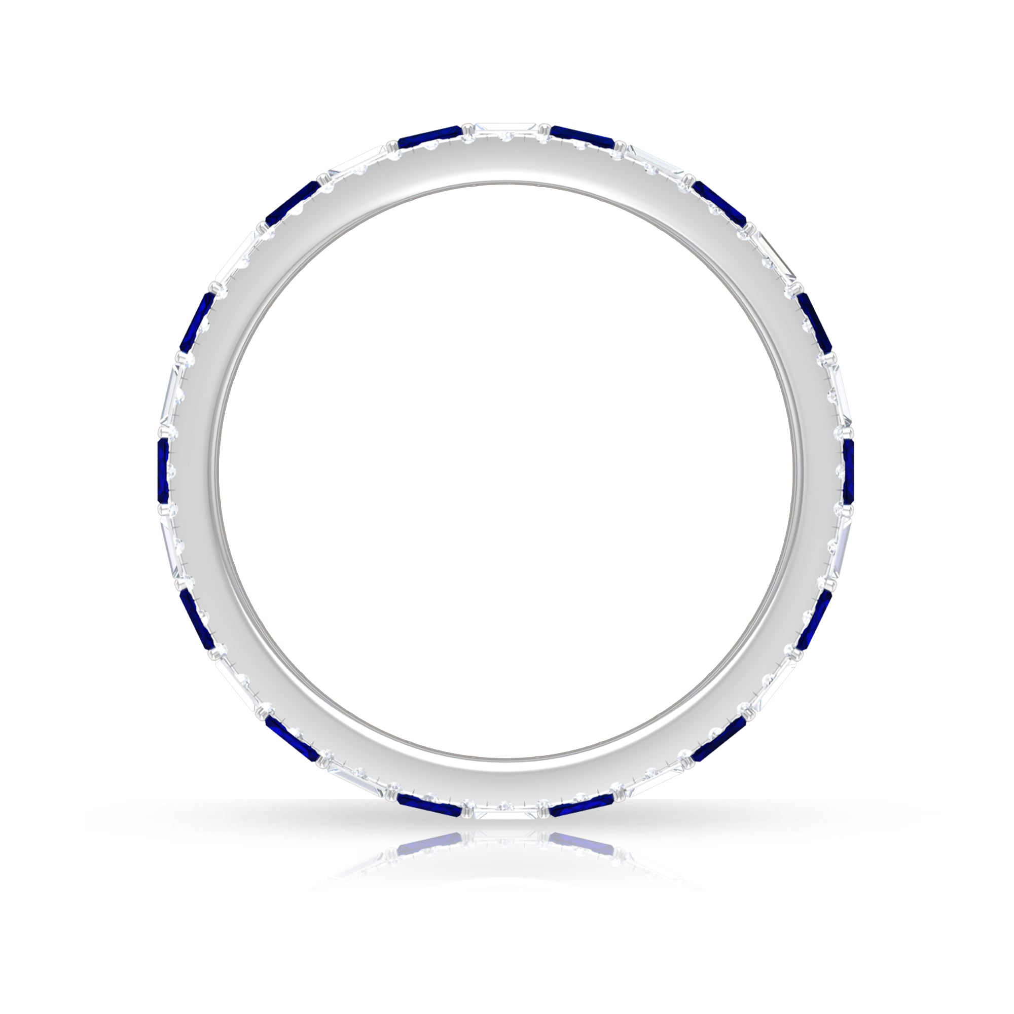 Baguette Cut Lab Grown Blue Sapphire and Moissanite Wedding Band