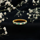 Introducing our stunning and exquisite Half Eternity Band Ring, adorned with Baguette Cut Created Emeralds and Diamonds, meticulously set in a Channel Setting. This ring combines the captivating allure of created emeralds with the brilliance of diamonds, all accentuated by the intricate milgrain detailing. Its a true masterpiece that adds a touch of elegance and sophistication to any occasion.
