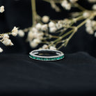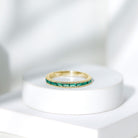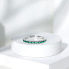 Baguette Cut Lab Grown Emerald Eternity Ring with Beaded Detailing