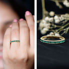 Shine with timeless charm and gentle beauty when you wear this Half Eternity Ring. It features beautiful baguette cut lab created emeralds set in secure channel setting. The stones are placed in an East West style, giving the Stackable Eternity Ring a unique and modern look. A delicate beaded border adds a touch of extra sparkle and makes the design stand out in a simple yet stylish way. Whether you wear it to enhance your engagement ring or choose it as a wedding band, this Baguette Cut Wedding Band is a lovely symbol of a new journey filled with love and devotion. This Emerald Wedding Band is available in a wide range of sizes to ensure a comfortable and perfect fit for every hand. Its slim and smooth design makes it easy to wear alone or stack with other rings for a more personal style. The Wedding Anniversary Band comes in a signature jewelry box, ready to be gifted to someone special or kept safely for yourself. Whether it is for a wedding, anniversary, or any memorable occasion, this Lab Created Emerald Band expresses love with a beautiful shine that is easy to notice.