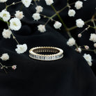 Shine with timeless elegance and captivating beauty when you slip on this Eternity Wedding Band. This stunning ring features an endless line of sparkle, showcasing Baguette Cut Moissanite set in Shared Prong Setting, adding a touch of glamour to any occasion. Whether you are looking to complement an engagement ring or use it as a Wedding Anniversary Band, this Baguette Cut Eternity Band symbolizes a new journey filled with love and commitment. Its meaning is especially significant when gifted during important moments like proposals or milestone anniversaries. With a variety of ring sizes available, this Moissanite Stackable Ring guarantees a perfect fit for every hand ready to display forever. Packaged in a signature jewelry box, it is a gift that is sure to wow. This Moissanite Wedding Band conveys love with a sparkle that is hard to overlook. It blends classic style with a modern twist, making it ideal for those who appreciate their sparkle with a hint of uniqueness.