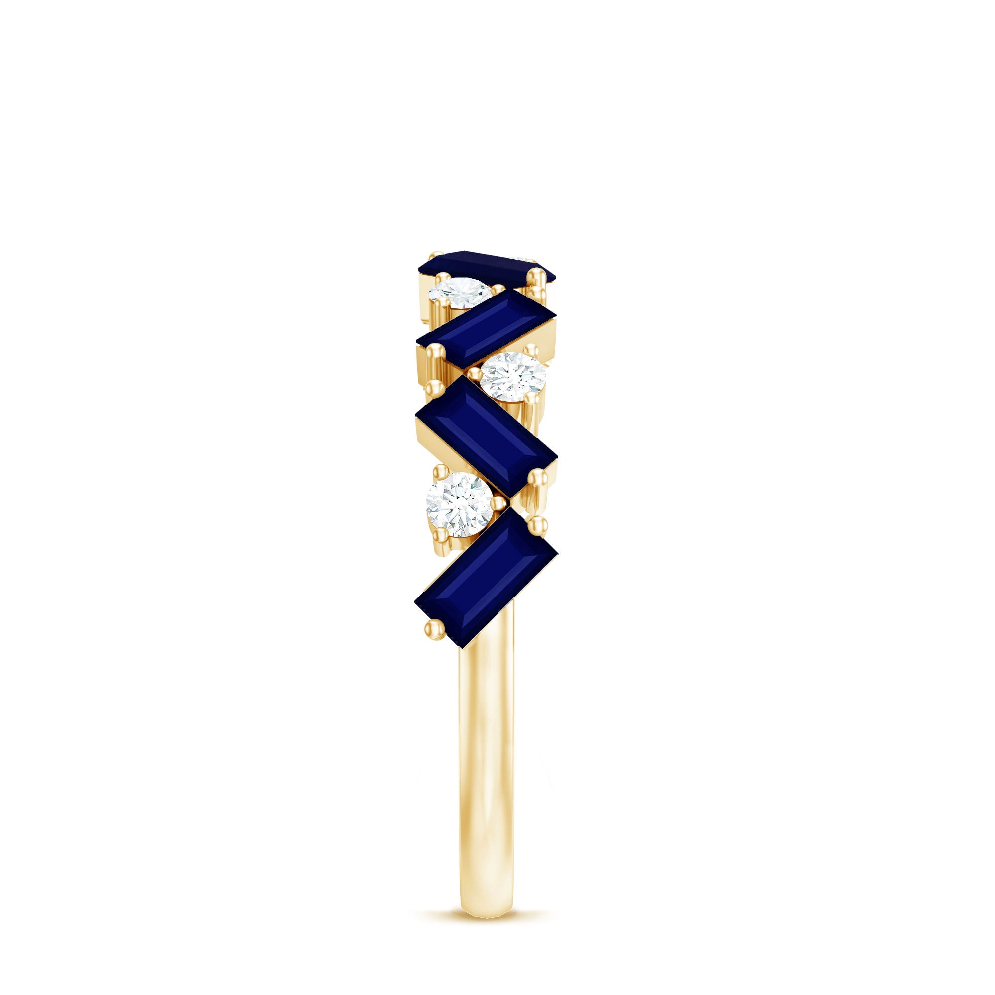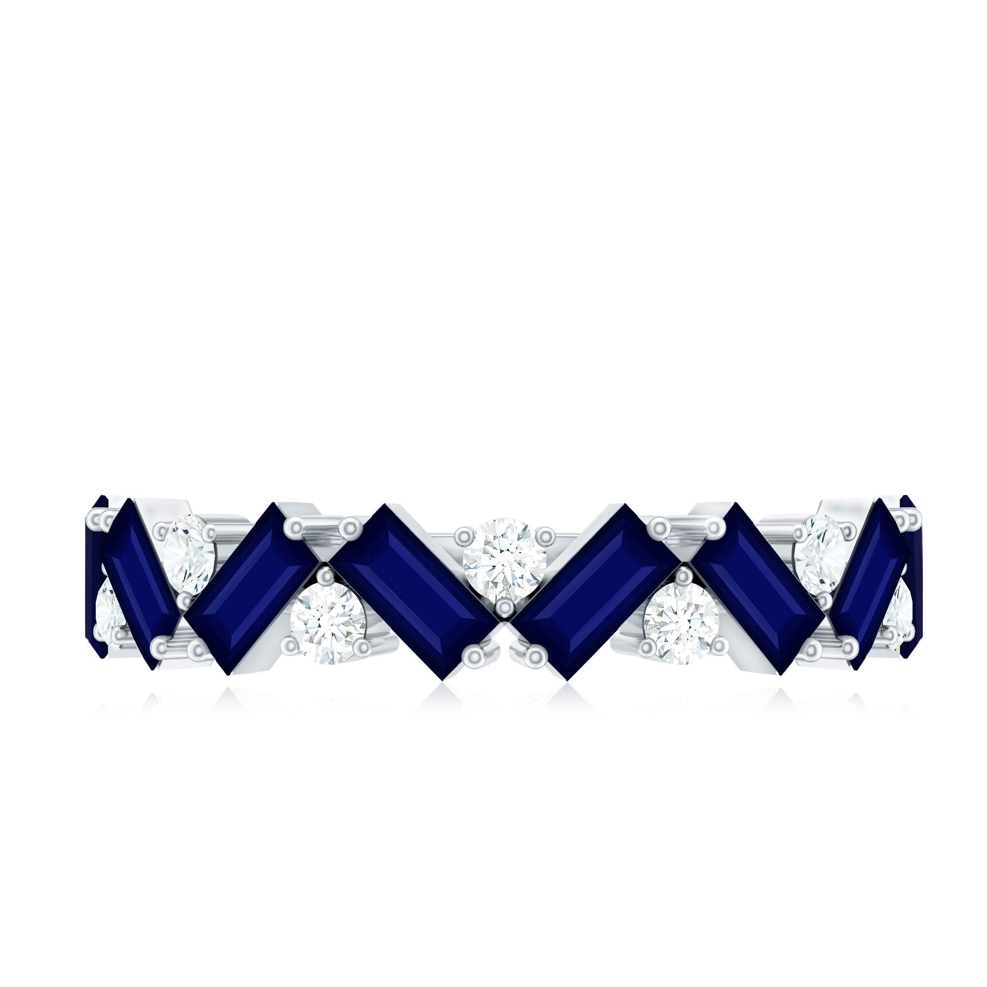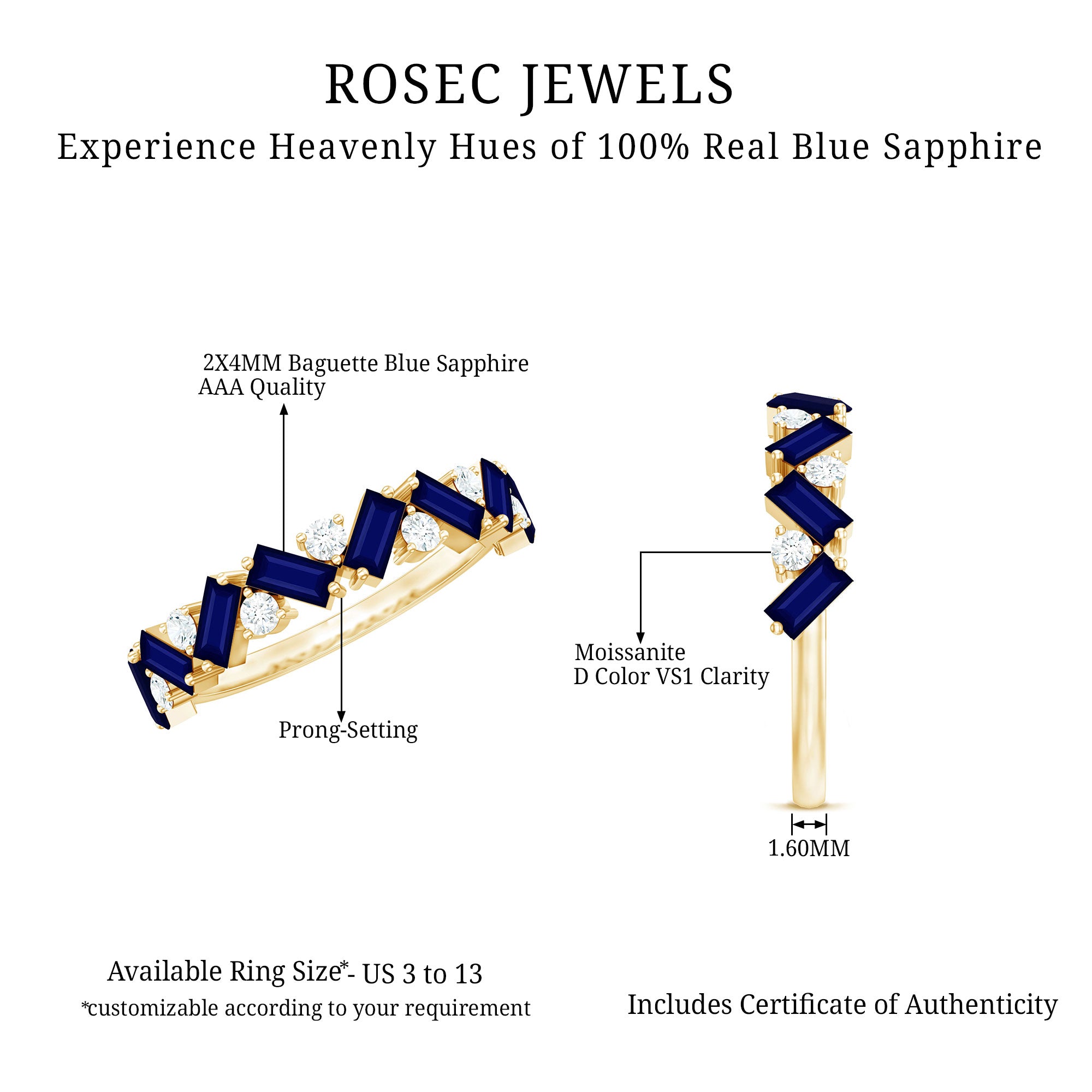 Baguette Cut Natural Blue Sapphire and Moissanite Half Eternity Ring
