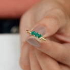 Baguette Cut Real Emerald Three Stone Promise Ring