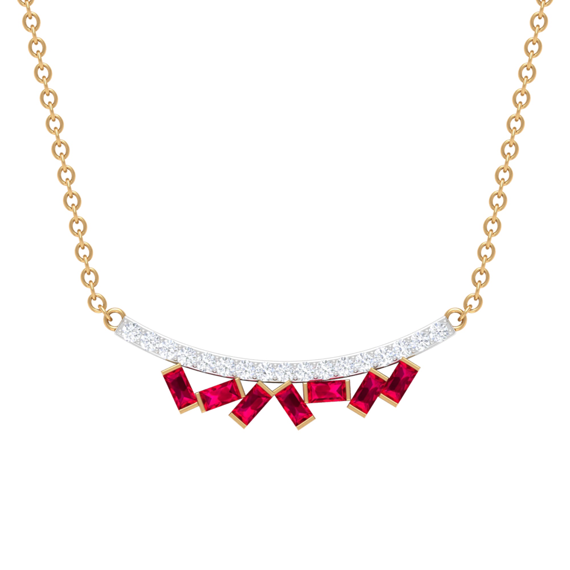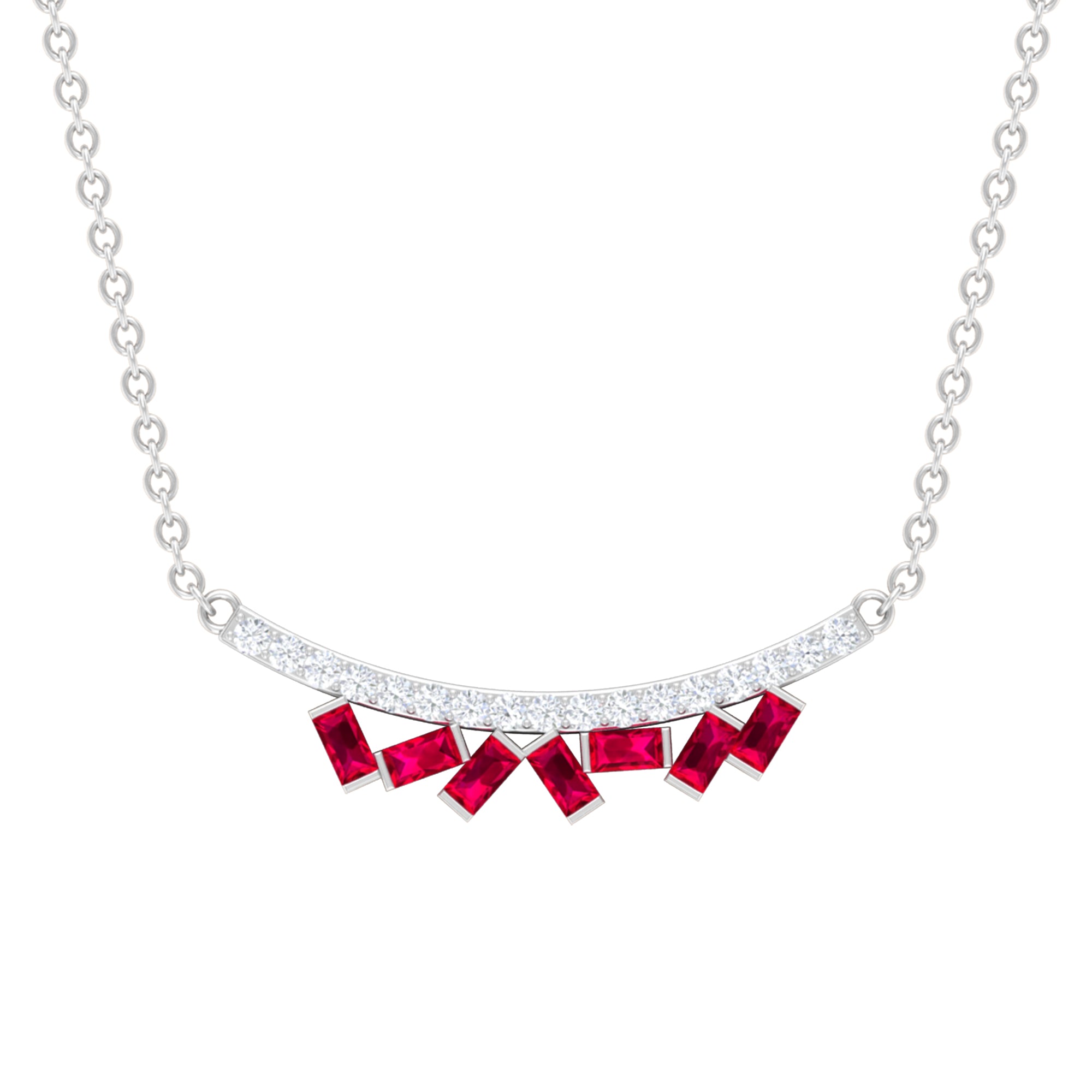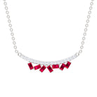 Baguette Cut Ruby Cluster Necklace with Diamond