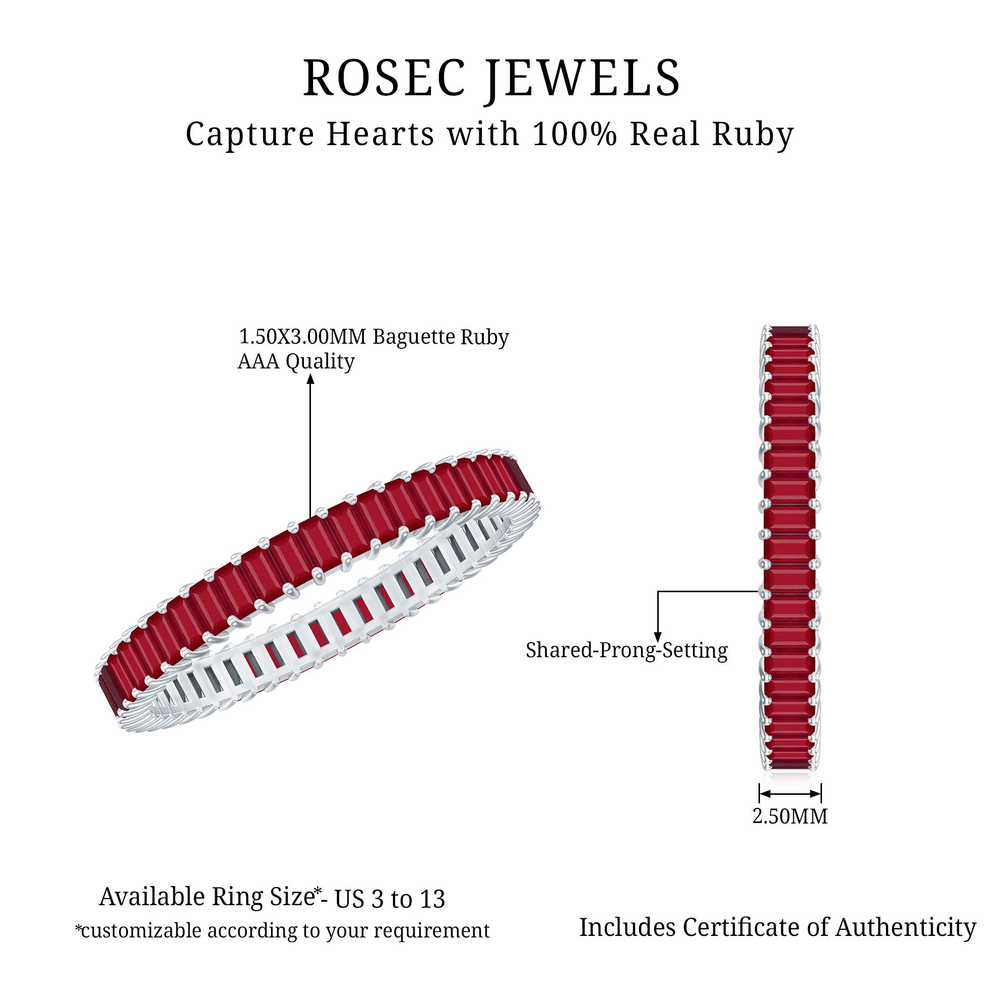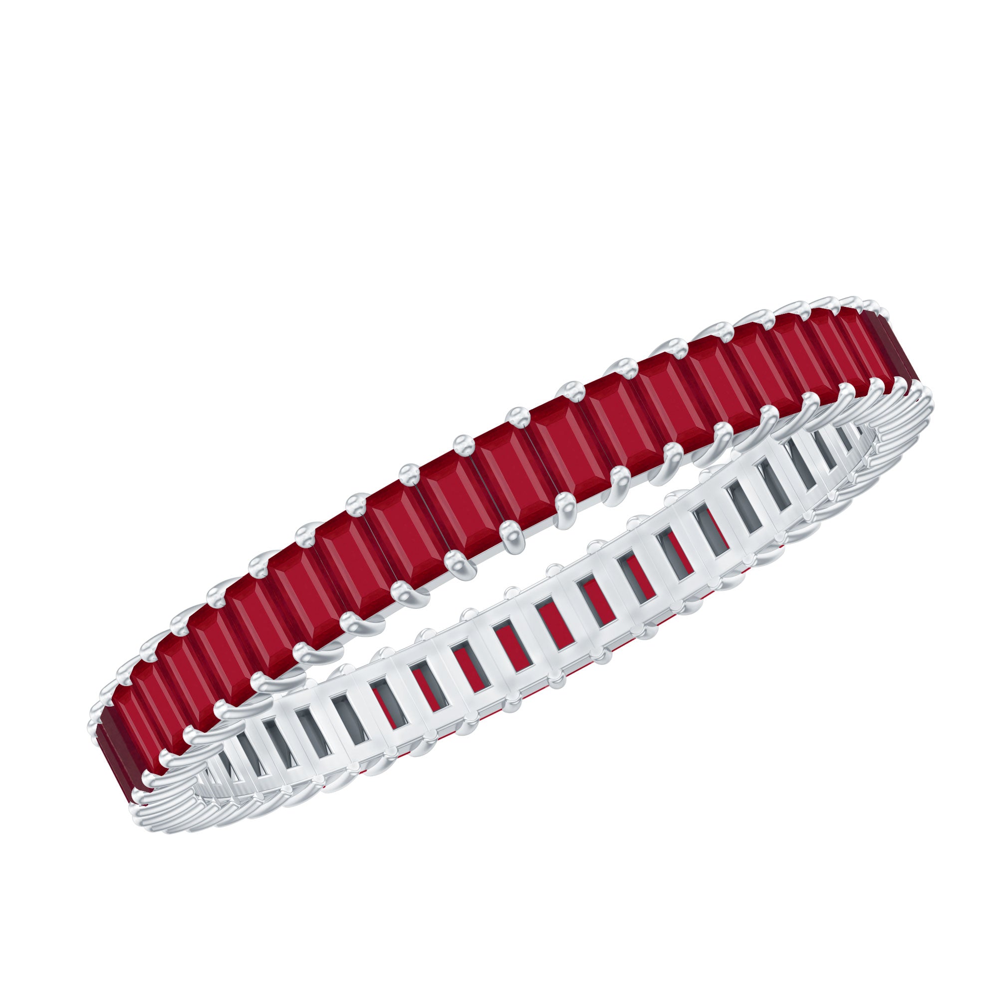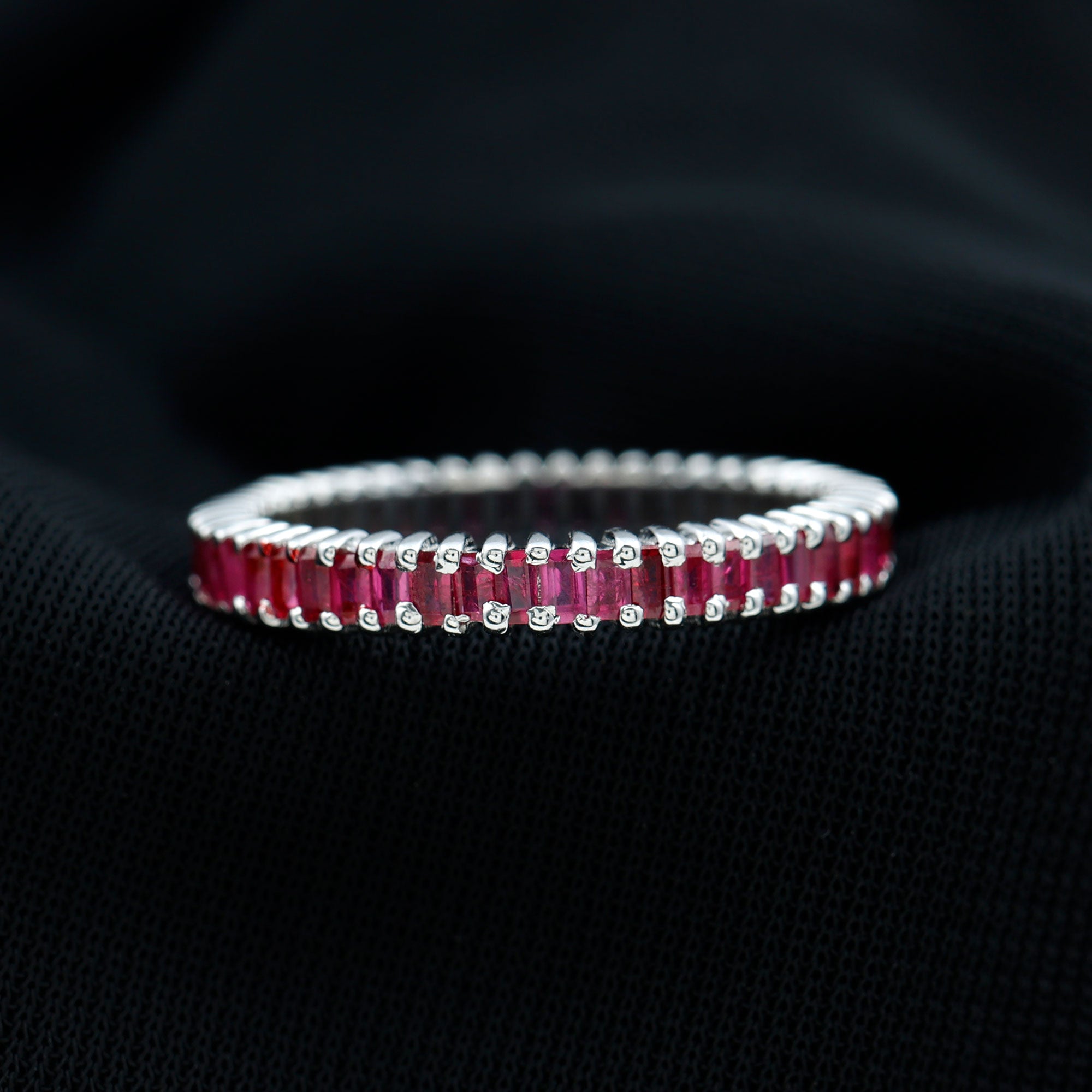 Baguette Cut Ruby Eternity Ring in Shared Prong Setting