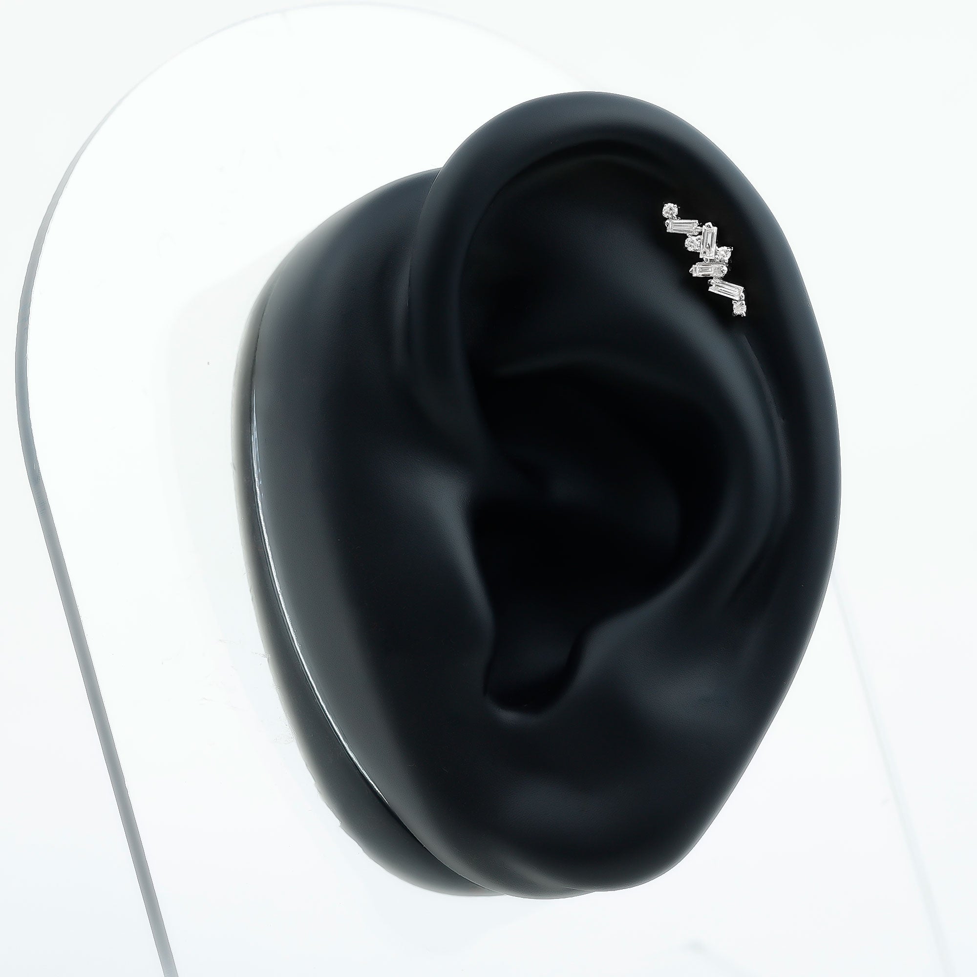 - Fashioned in iconic hallmarked gold for everyday wear, this baguette earring can be styled on your lower helix, cartilage, or upper lobe piercings.
