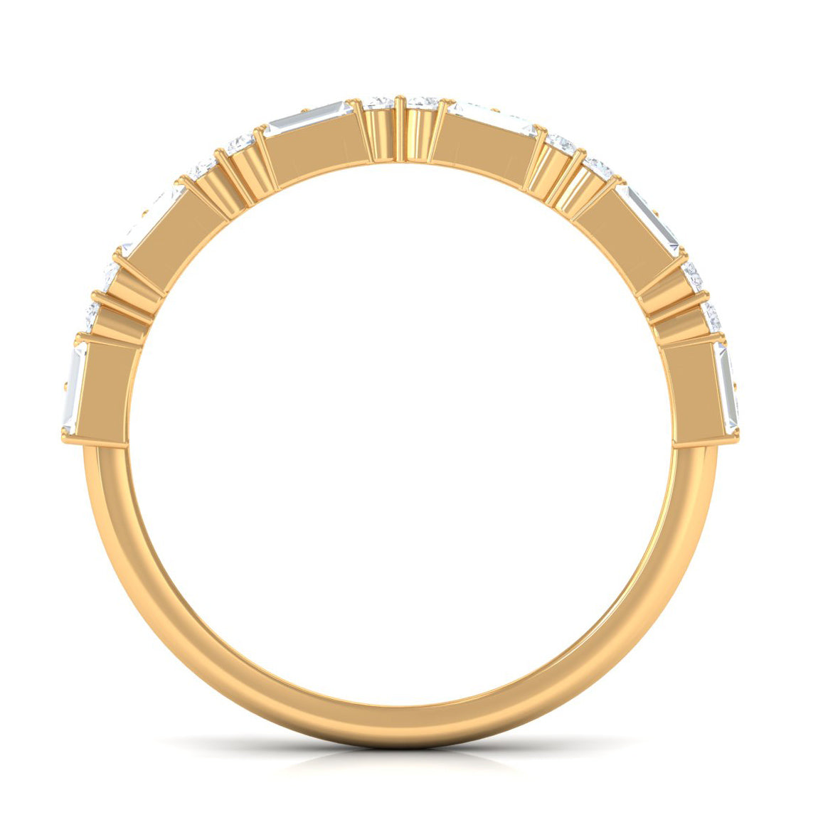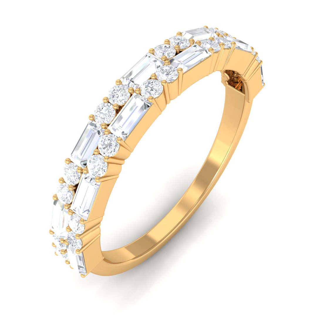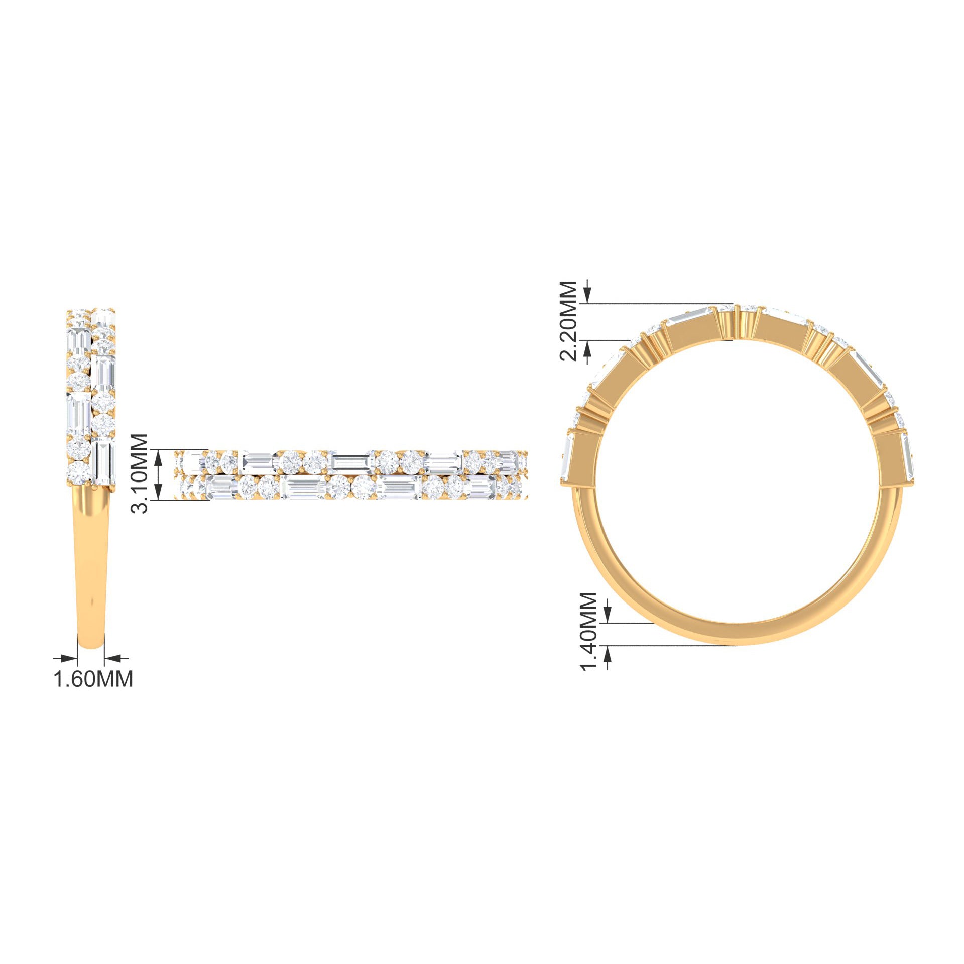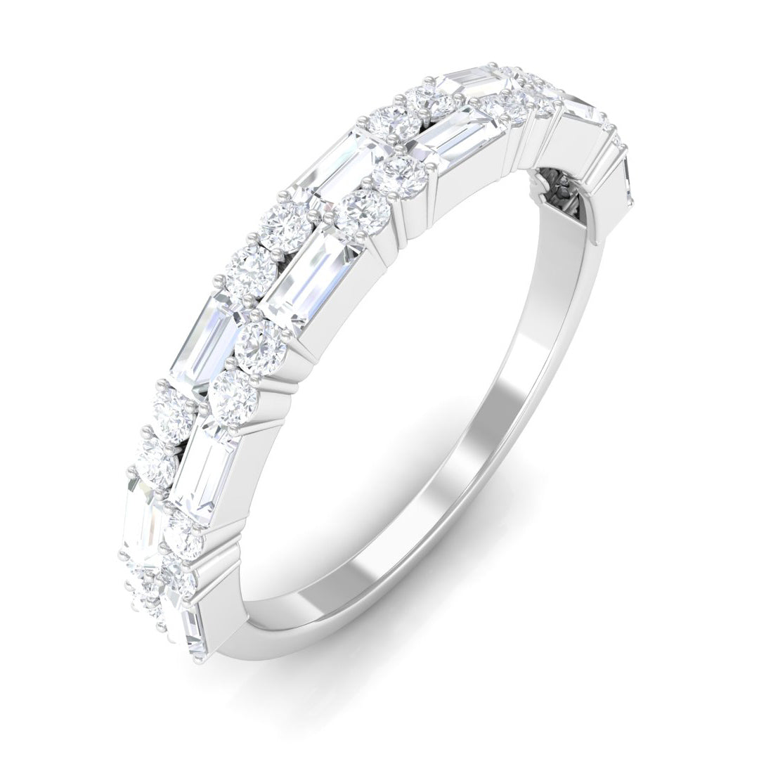 Your love is forever, and this baguette diamond half eternity ring is the perfect way to symbolize it. The ring features small sparkling baguette diamonds arranged in a half eternity band along with round shape shimmering Diamonds, representing your everlasting love. The prong setting ensures the safety and durability of the stones. This ring is sure to get more attention and make a statement, wherever you go.