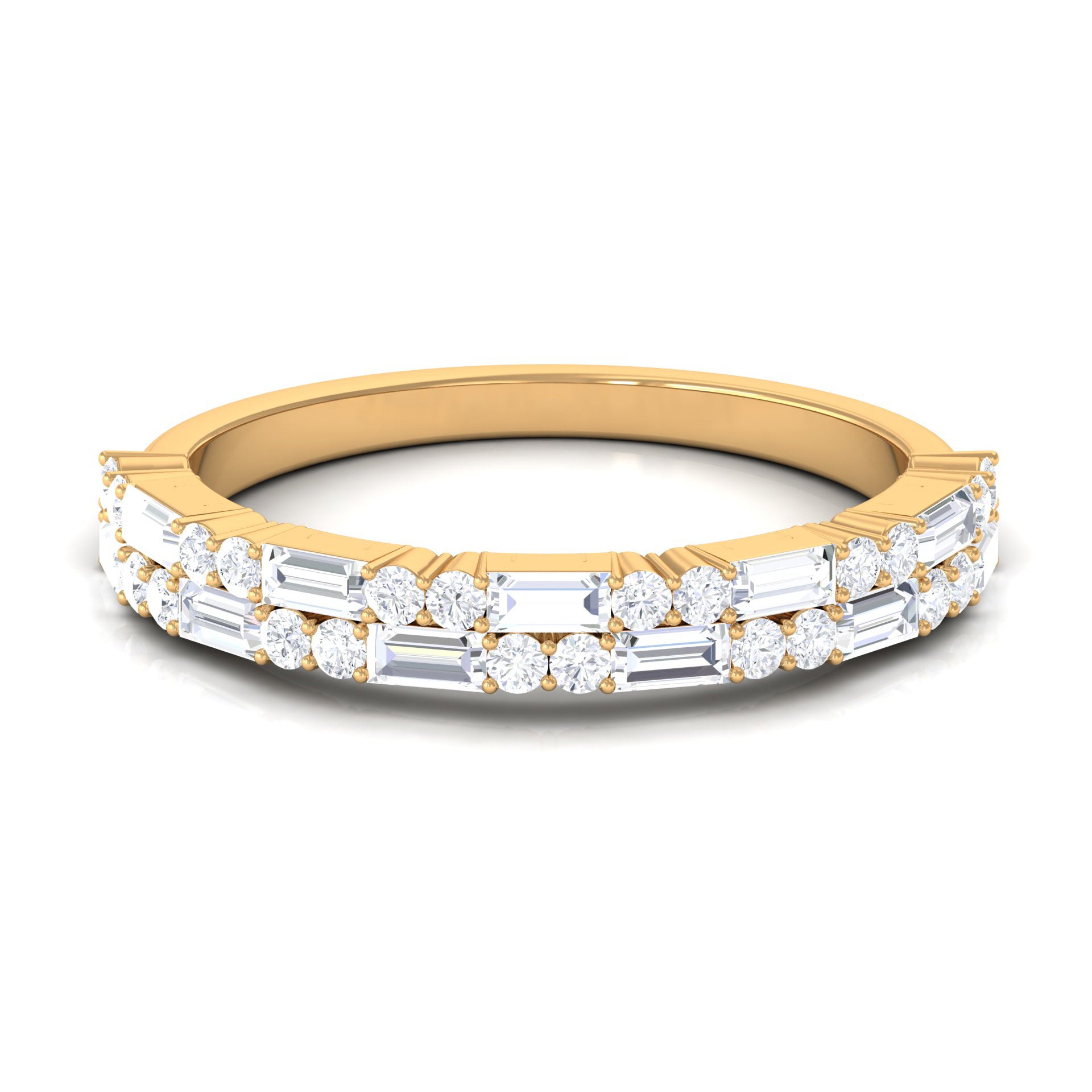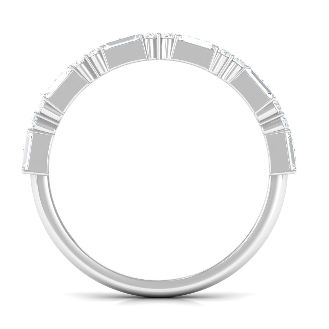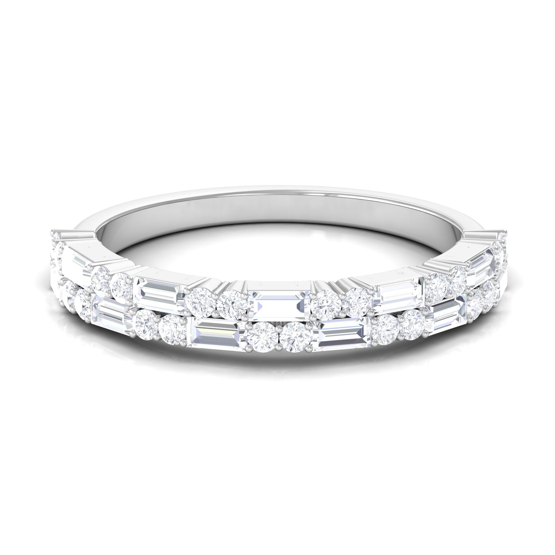 Your love is forever, and this baguette diamond half eternity ring is the perfect way to symbolize it. The ring features small sparkling baguette diamonds arranged in a half eternity band along with round shape shimmering Diamonds, representing your everlasting love. The prong setting ensures the safety and durability of the stones. This ring is sure to get more attention and make a statement, wherever you go.