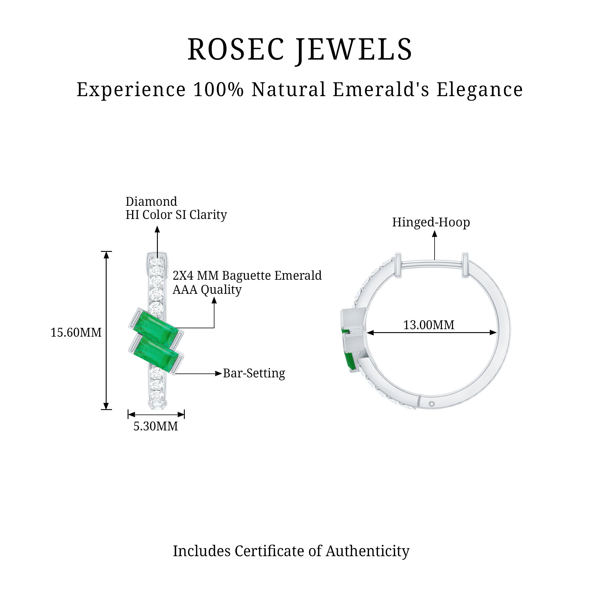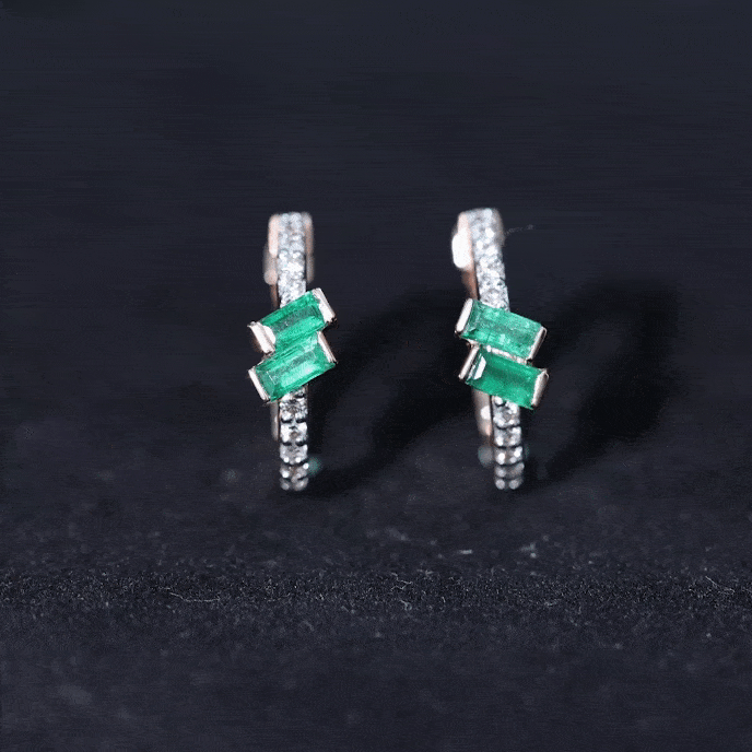 These Emerald Hoop Earrings are a beautiful combination of modern beauty and classic charm, that will elevate the look. These earrings feature a Hoop embedded with petite Diamonds and at the center, two Baguette Cut Emeralds are securely placed in a Bar Setting. These Emerald Earrings are versatile and ideal for any occasion that adds a touch of elegance to casual or office attire alike. These May Birthstone Earrings symbolize renewal and prosperity. The adorable shine of AAA Quality Emerald and HI-SI Diamonds is reflected in Baguette Hoop Earrings with Screw on Backs. These Emerald Diamond Earrings will be delivered to you in the classic jewelry box for storage.