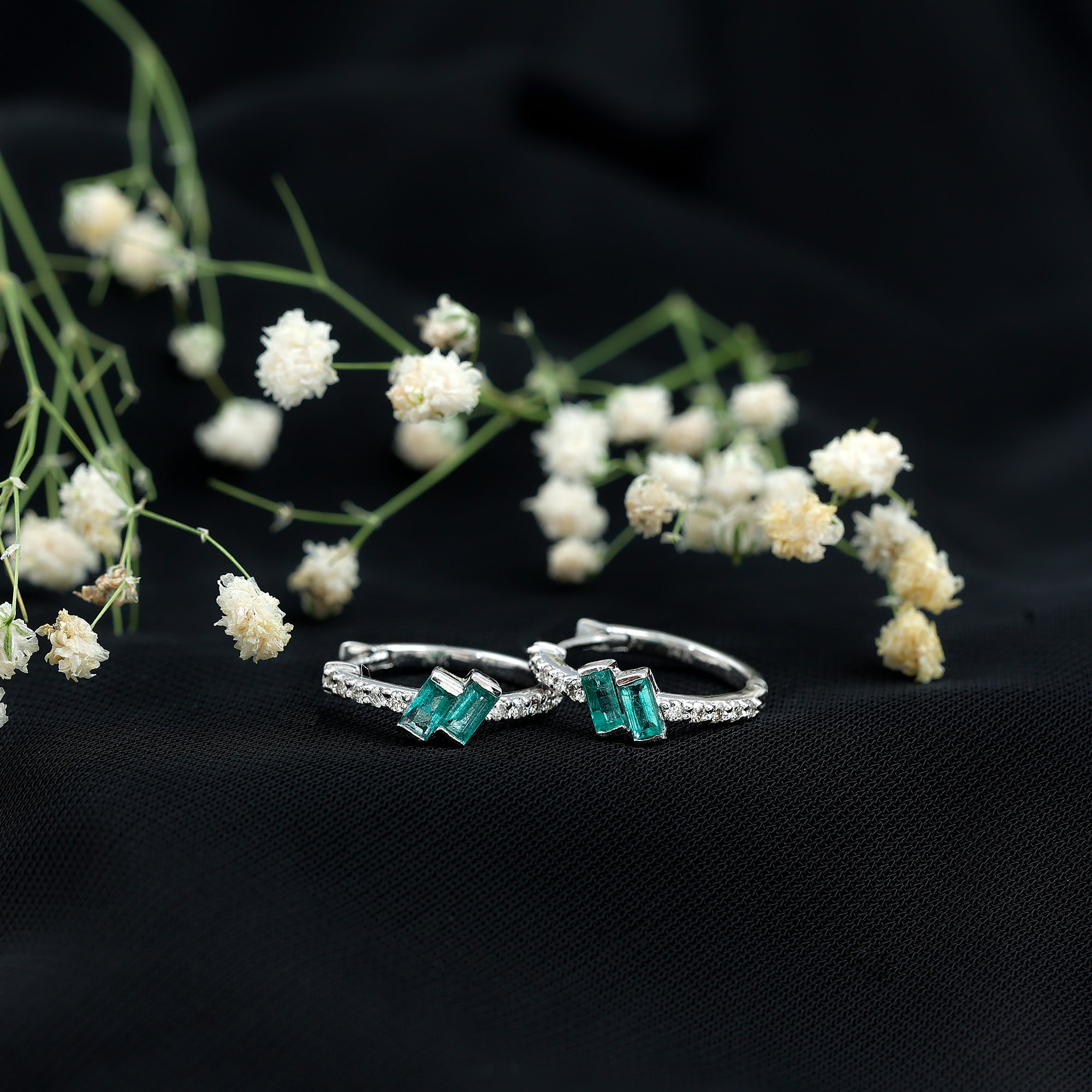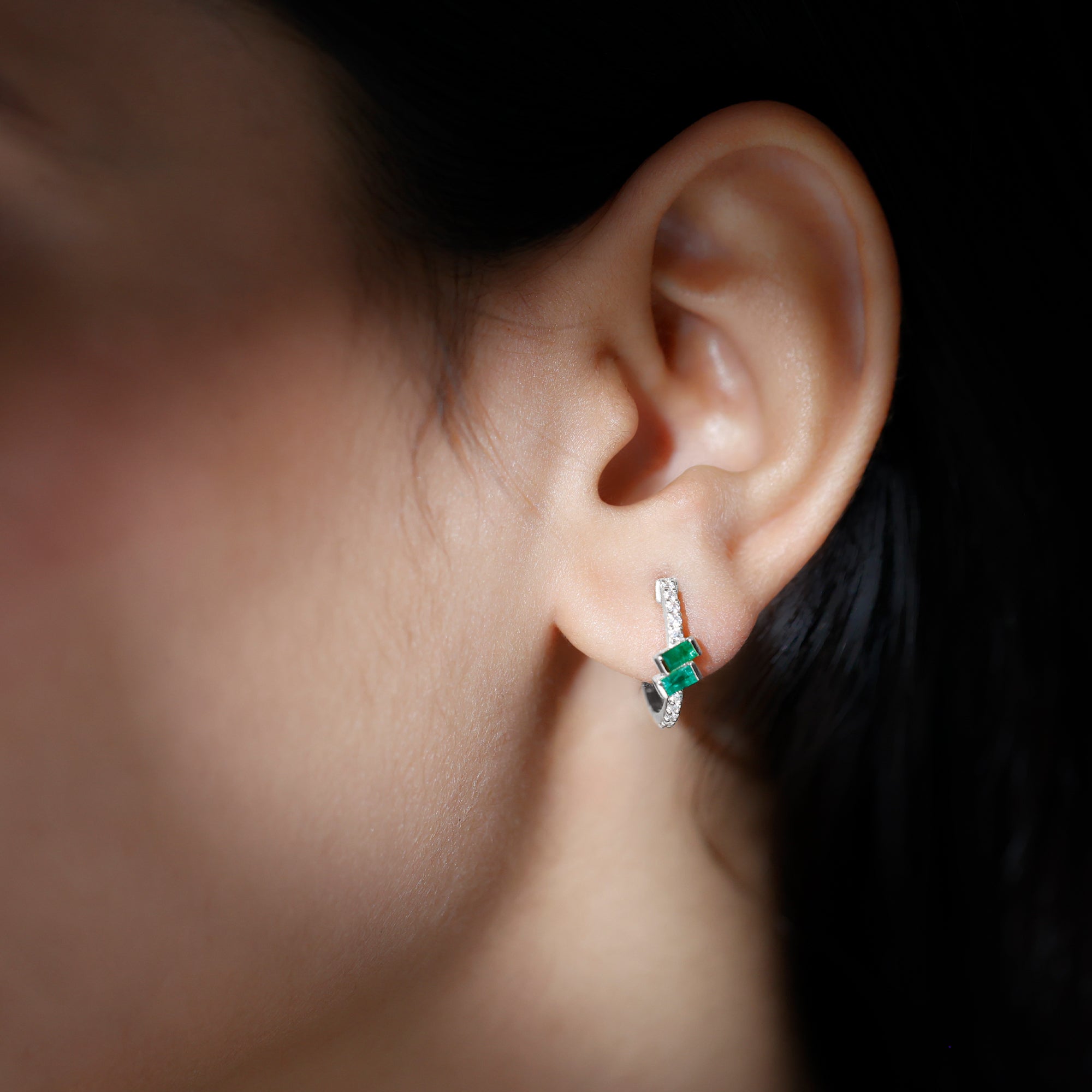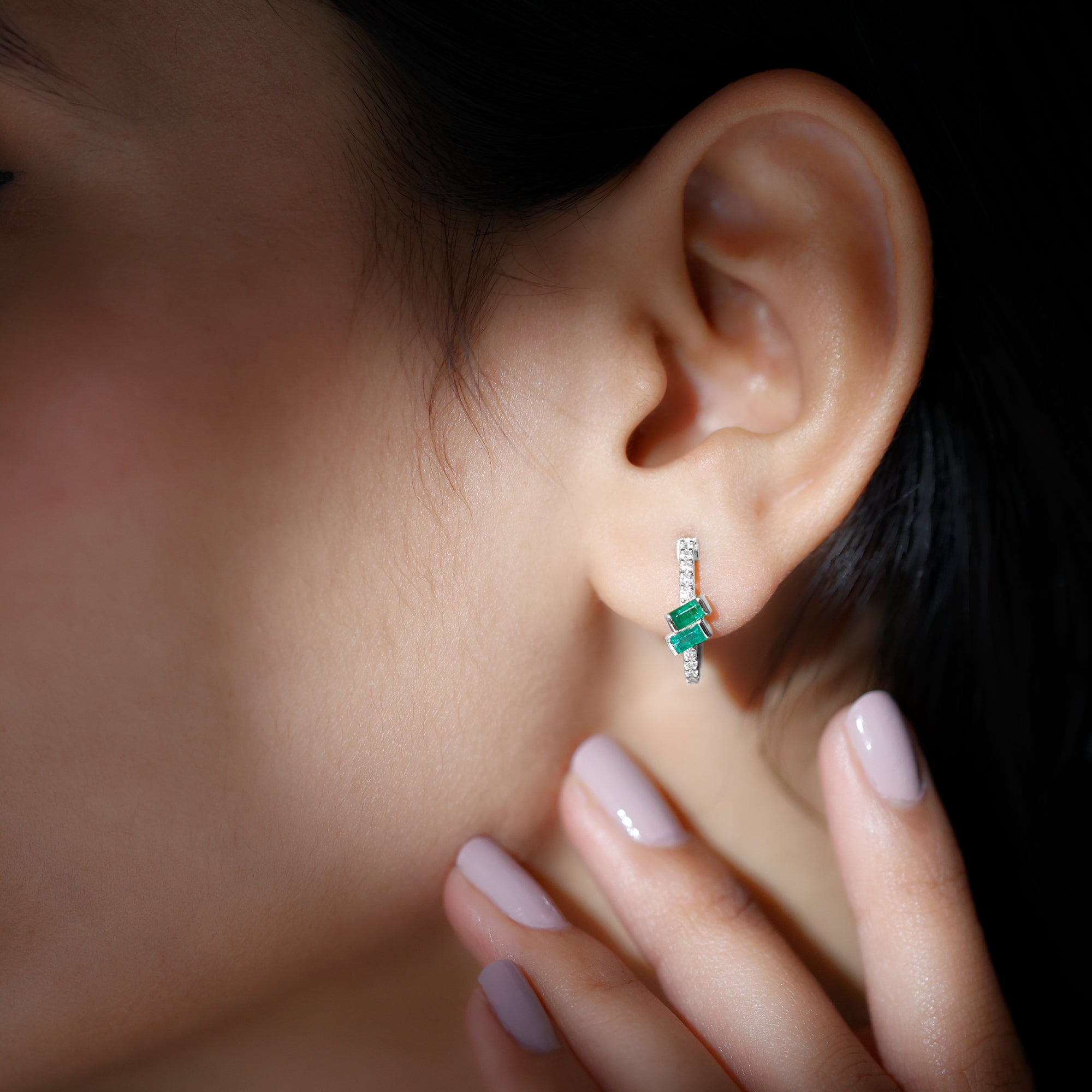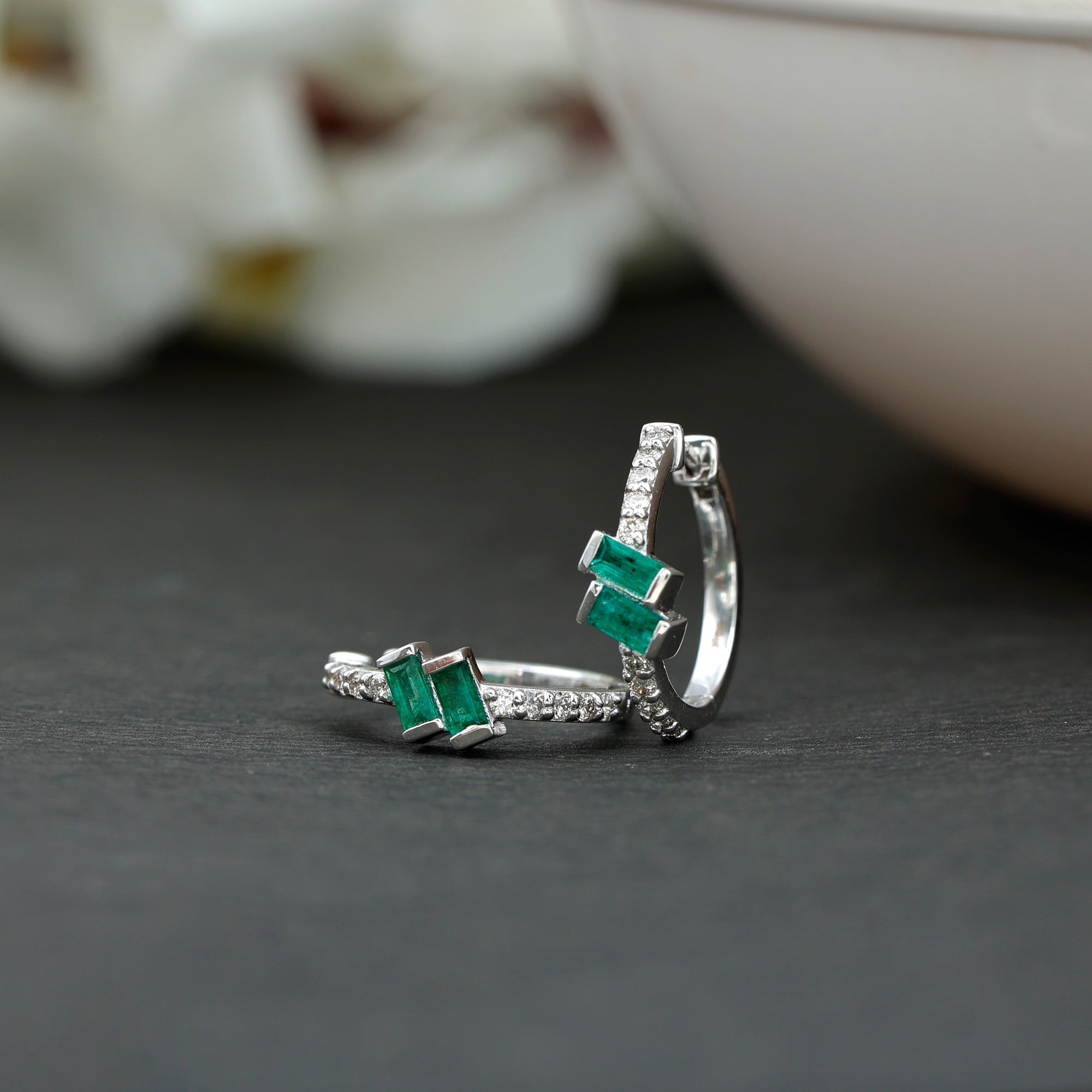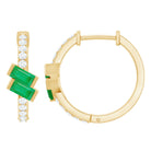 Baguette Emerald and Diamond Hoop Earrings For Women