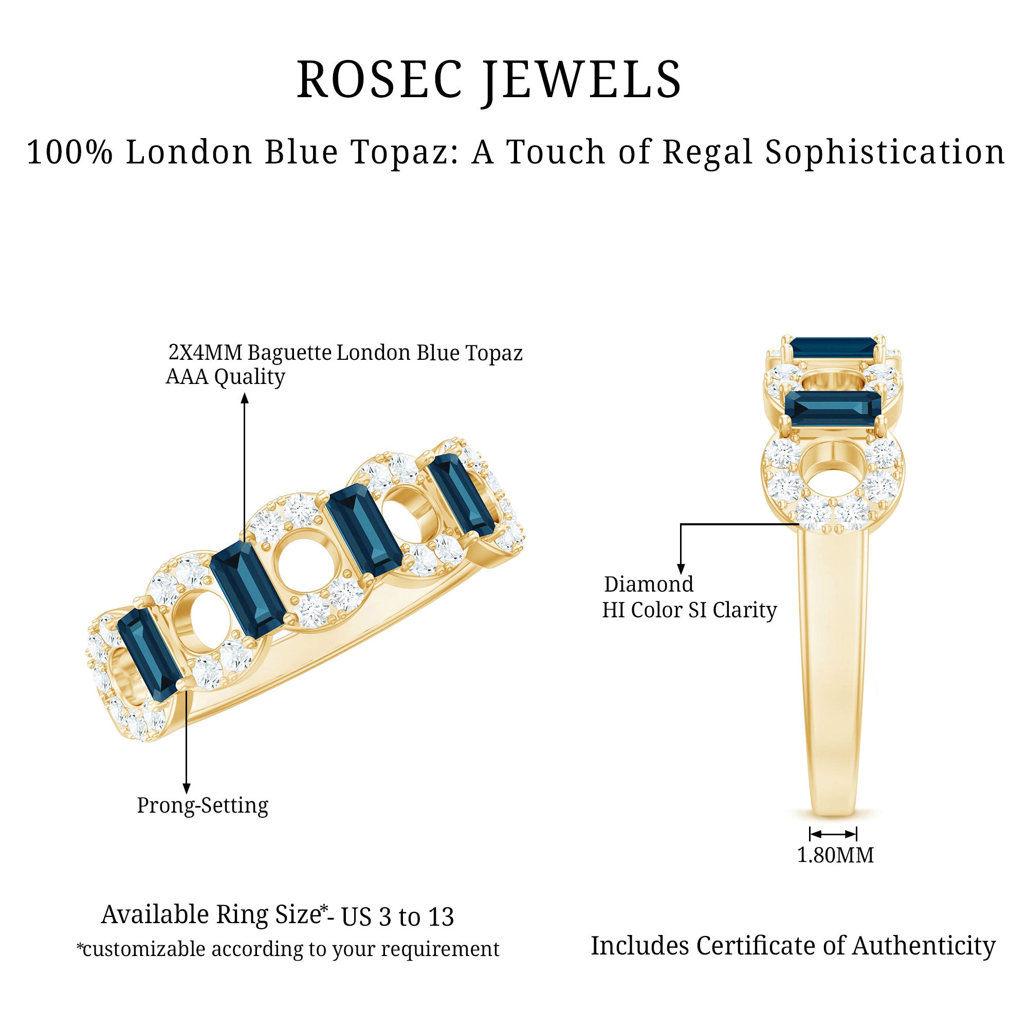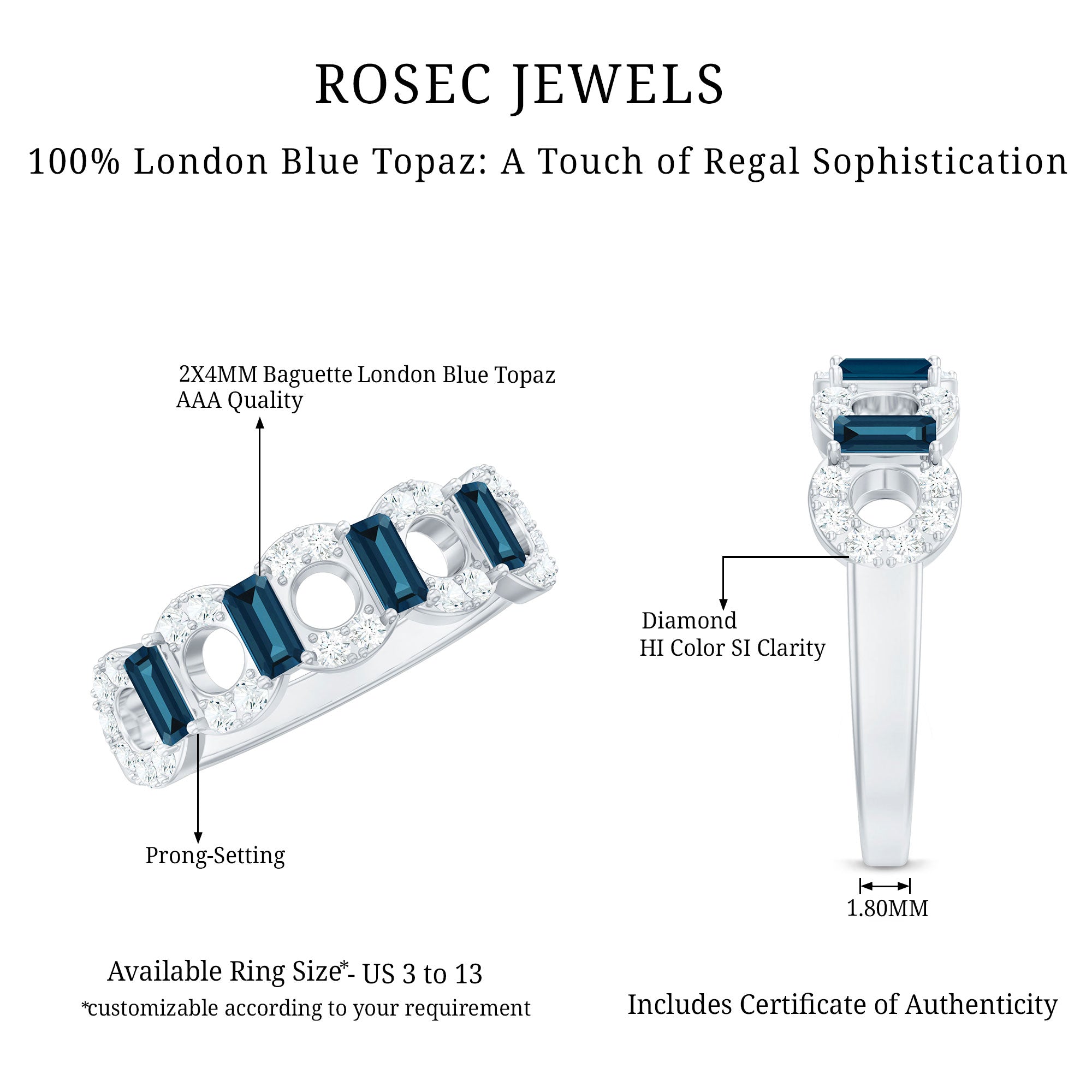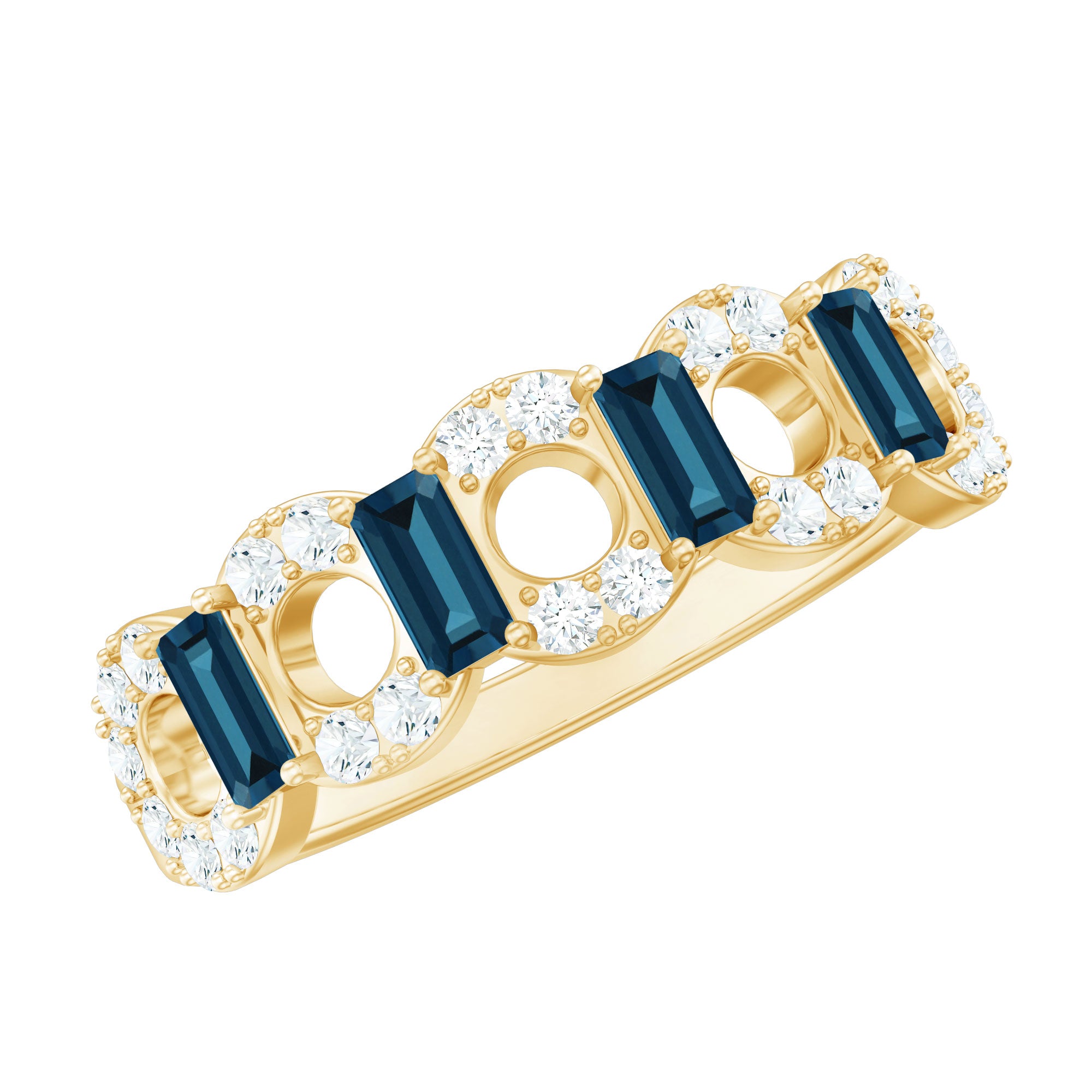 Baguette London Blue Topaz Art Deco Eternity Band with Diamond