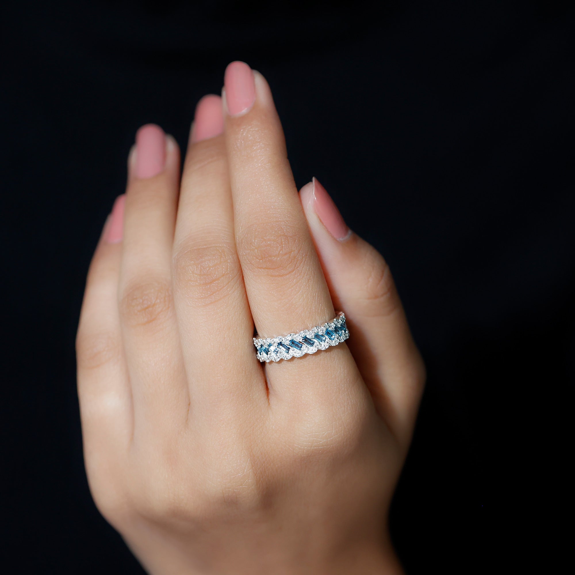 Baguette London Blue Topaz Full Eternity Band with Diamond