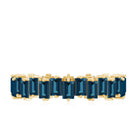 This wedding ring features baguette London blue topaz stones arranged in a distinctive zig zag pattern. The design emphasizes clean geometry, bold color, and a structured band silhouette suited for wedding wear or stacking combinations.