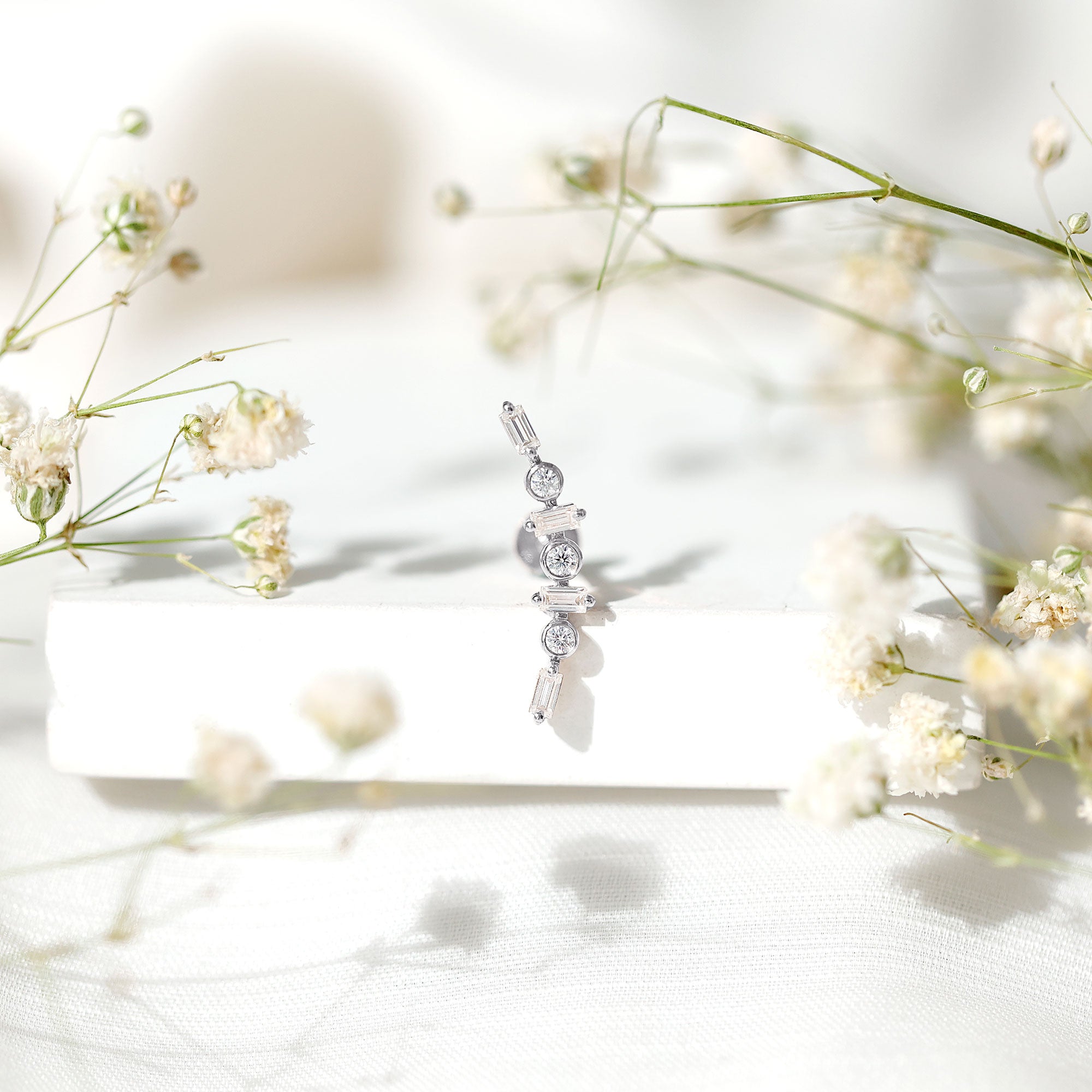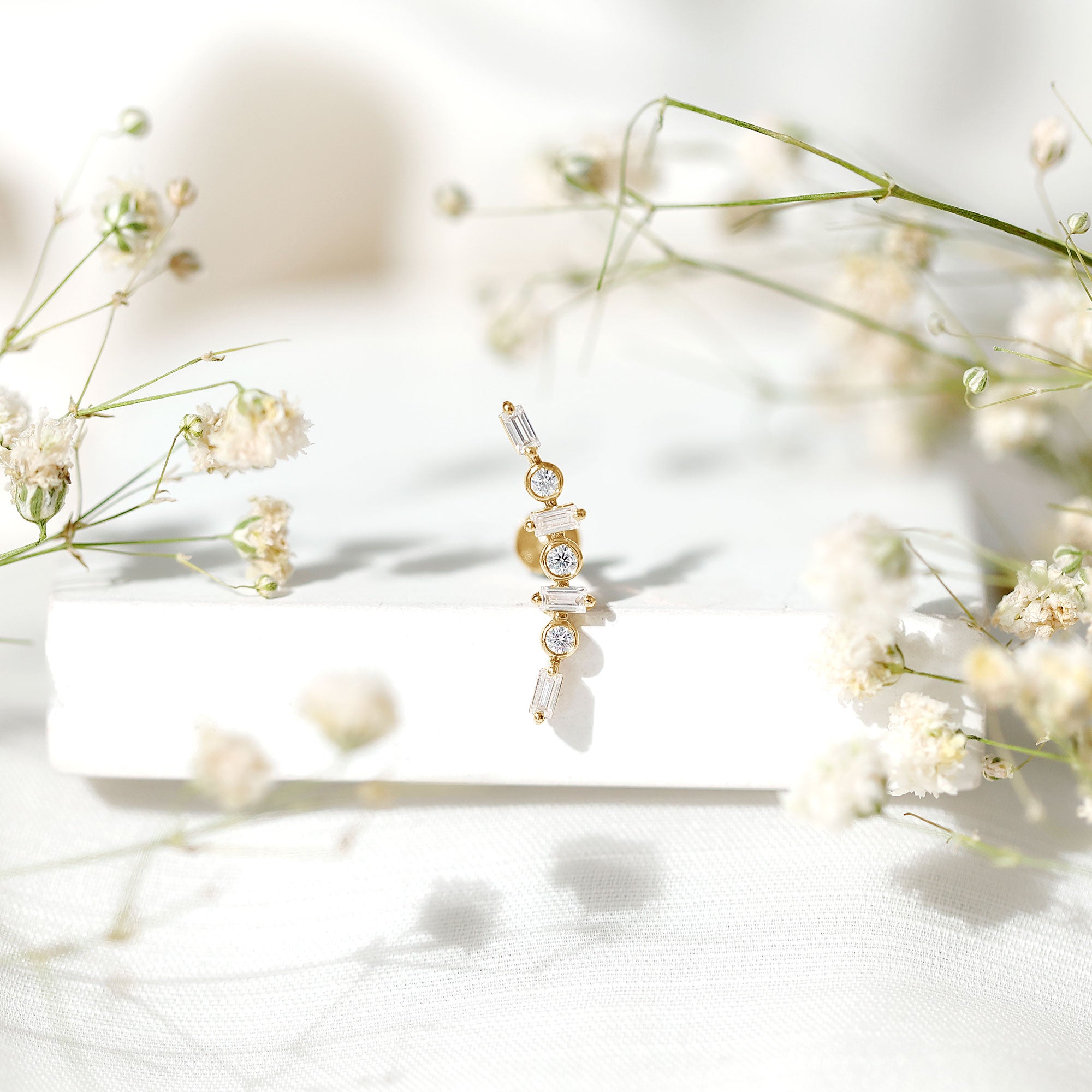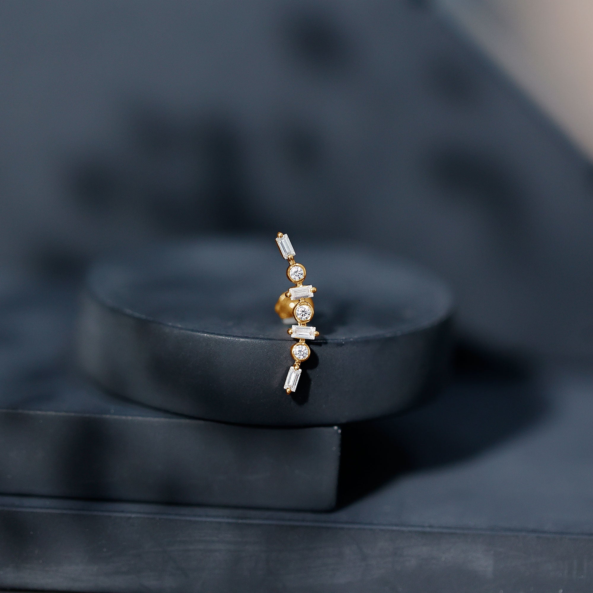 Baguette Moissanite Art Deco Climber Earring for Helix Piercing