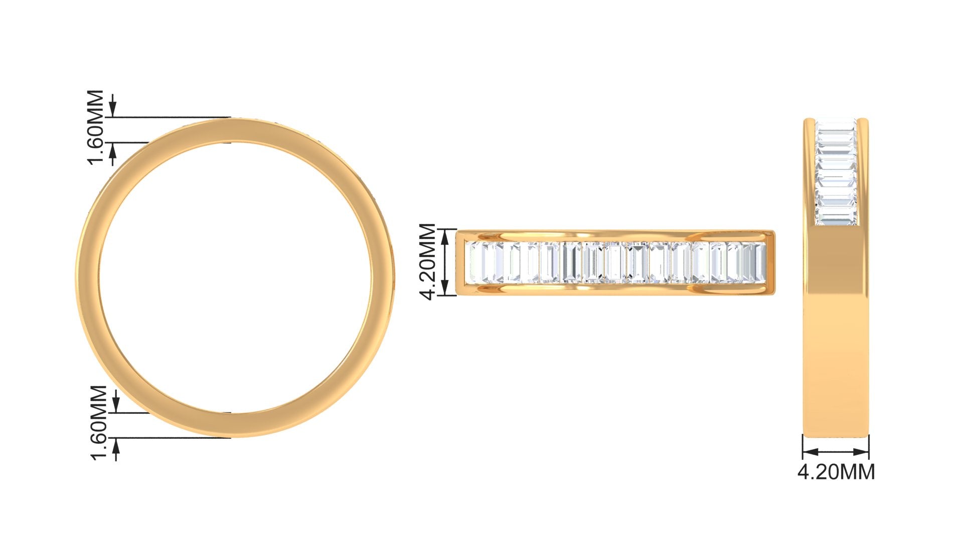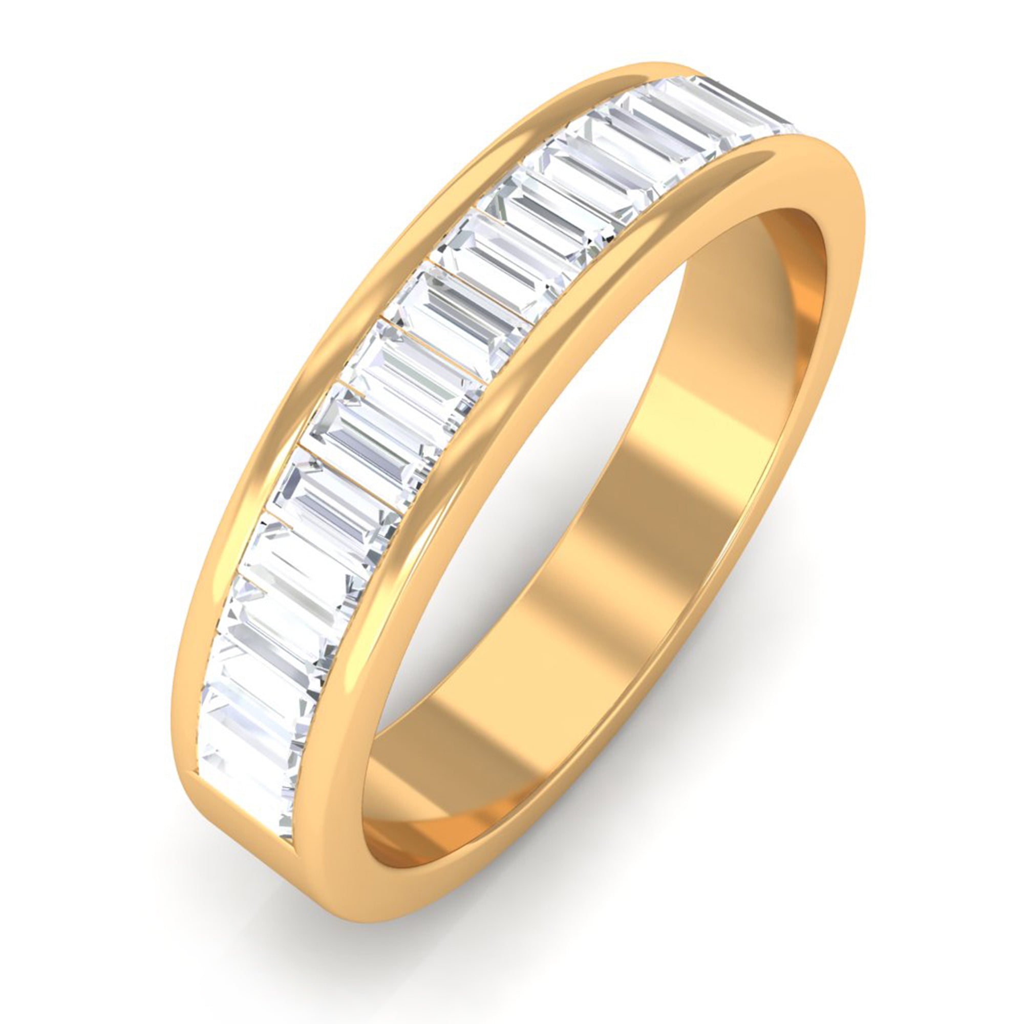 Shine like a star and let your finger in a mesmerizing display of brilliance with this diamond half eternity band ring. This band ring features baguette shape small sparkling diamond center stones, making this piece unique and versatile. The channel setting ensures the safety and durability of the stones. This is the perfect ring for making endless memories.