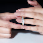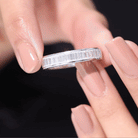 Elevate your wedding ensemble with the timeless allure of this Wedding Band. The band features meticulously arranged baguette shape Moissanite stones, each set securely within the channel for a seamless and elegant look. The sleek design creates a harmonious blend of modernity and classic charm, making it an ideal choice for those seeking refined beauty. The brilliance of the Moissanite stones enhances the bands overall radiance, adding a touch of glamour to symbolize your everlasting love.