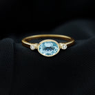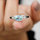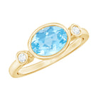 Shower your love on ladylove with this East West Engagement Ring. This Engagement Ring is embellished with Oval Cut Aquamarine in the center and Round Diamond in a bezel setting. This Aquamarine Engagement Ring is crafted in gold metal to give a charming appeal.