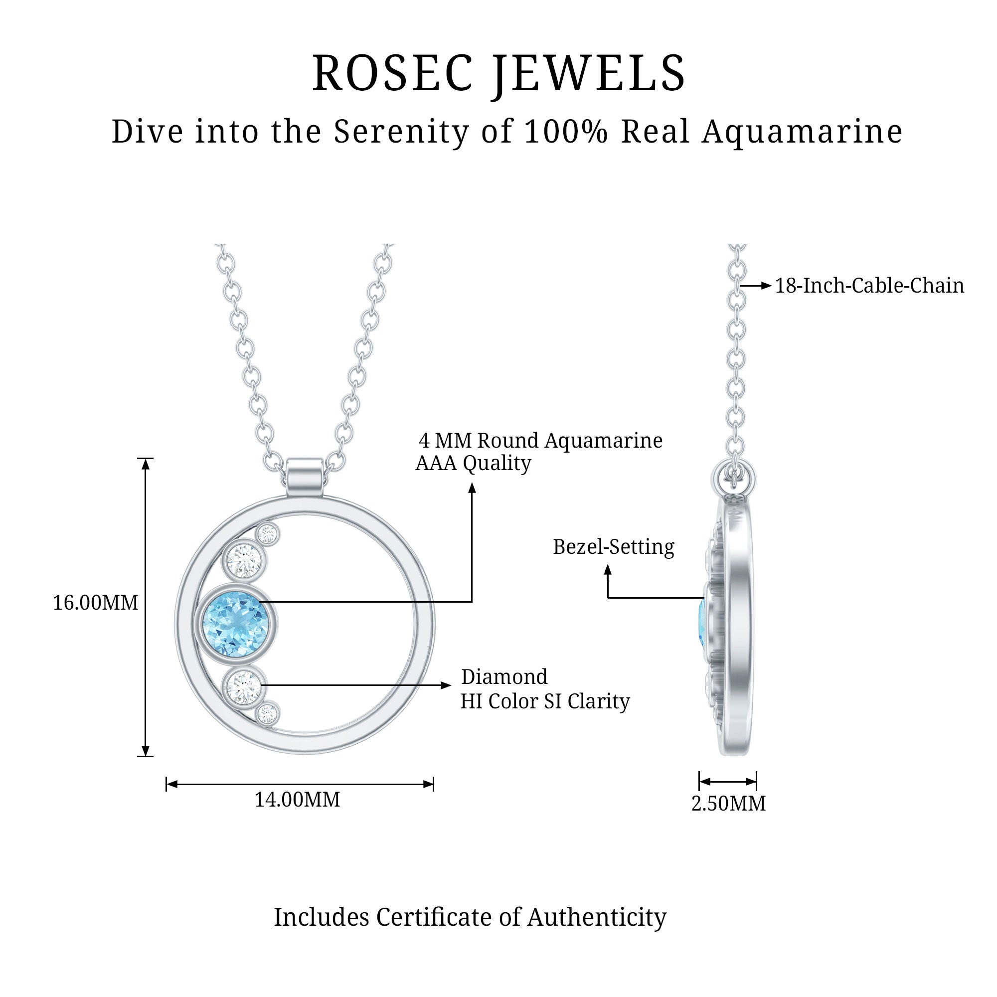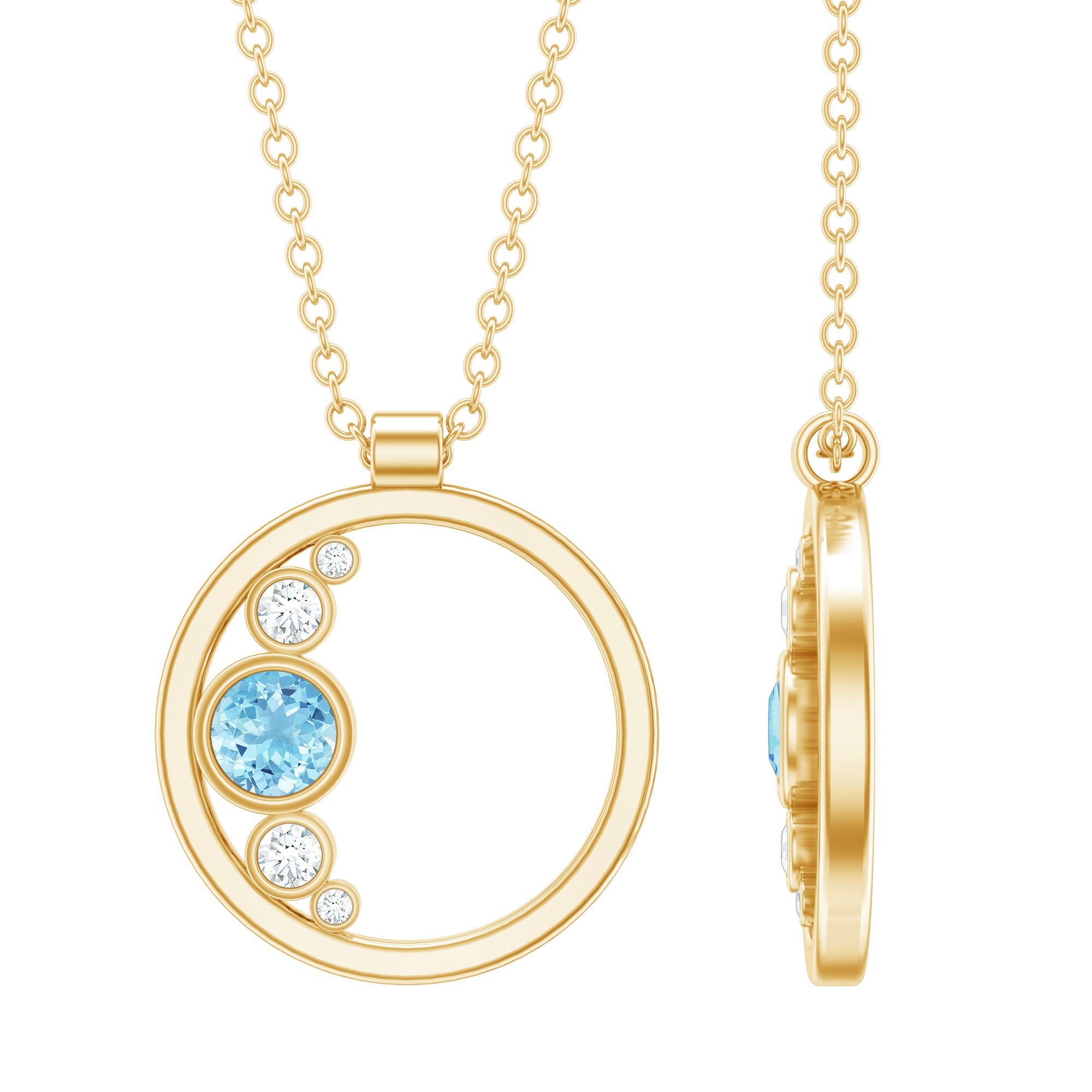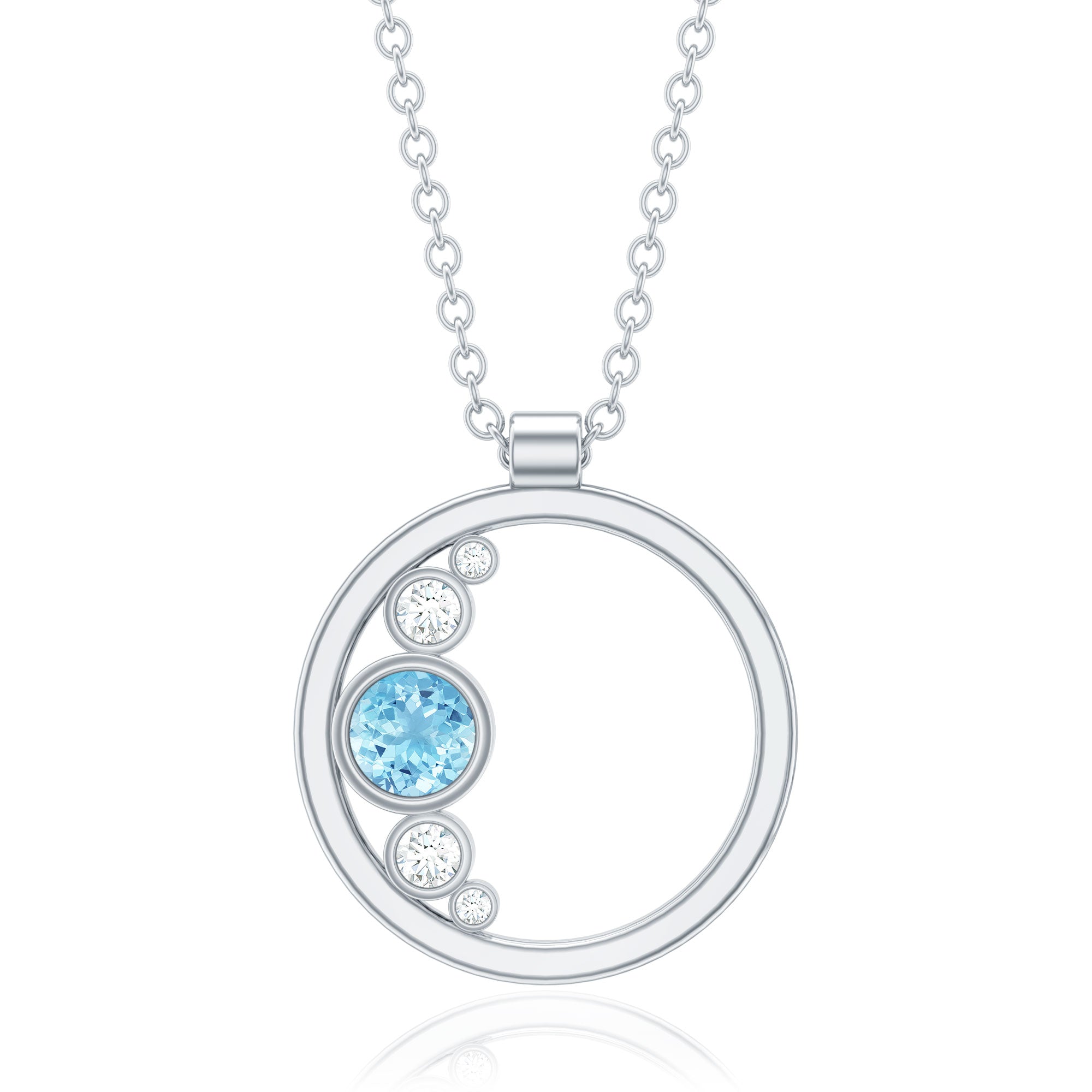 Enhance your style with the enchanting charm of this Open Circle Pendant, featuring a Round Shape Aquamarine and Diamond elegantly secured in a Bezel Setting. This pendant effortlessly complements both your casual and dressy attire, allowing you to achieve a stunning look. Treat yourself to the understated elegance of this minimal pendant, or gift it as a sweet birthday present for a special woman in your life. Embrace the beauty and versatility of this timeless piece, adding a touch of allure to any ensemble with its graceful design.
